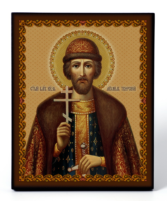 Икона на доске 13х15 объёмная печать, лак Михаил Тверской 3