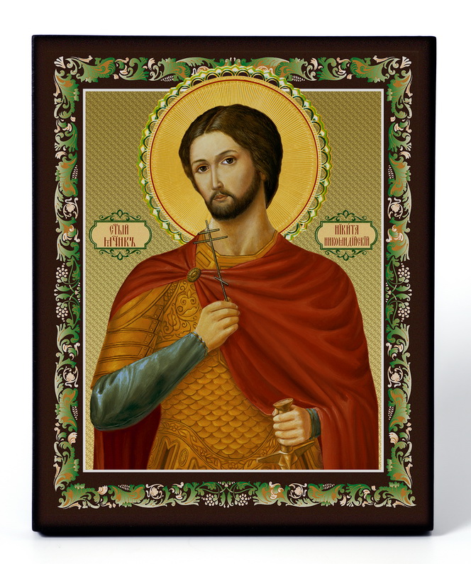 Икона на доске 13х15 объёмная печать, лак Никита