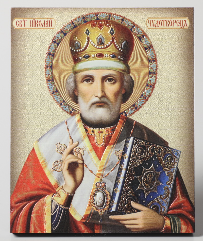 Икона на доске 13х15 объёмная печать, лак Николай Чудотворец 1