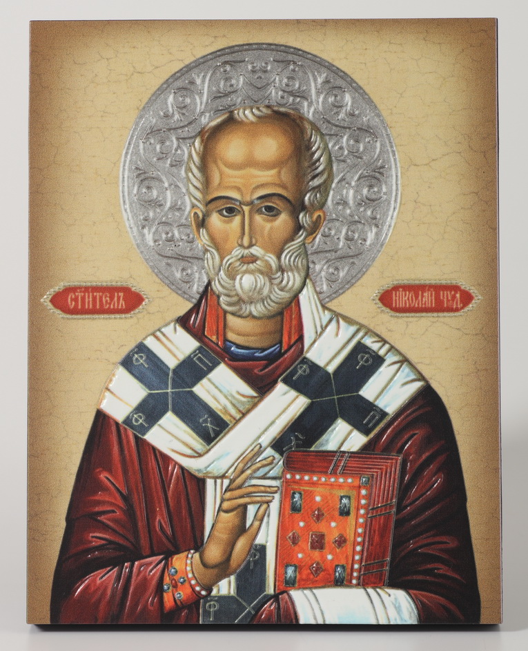 Икона на доске 13х15 объёмная печать, лак Николай Чудотворец 2