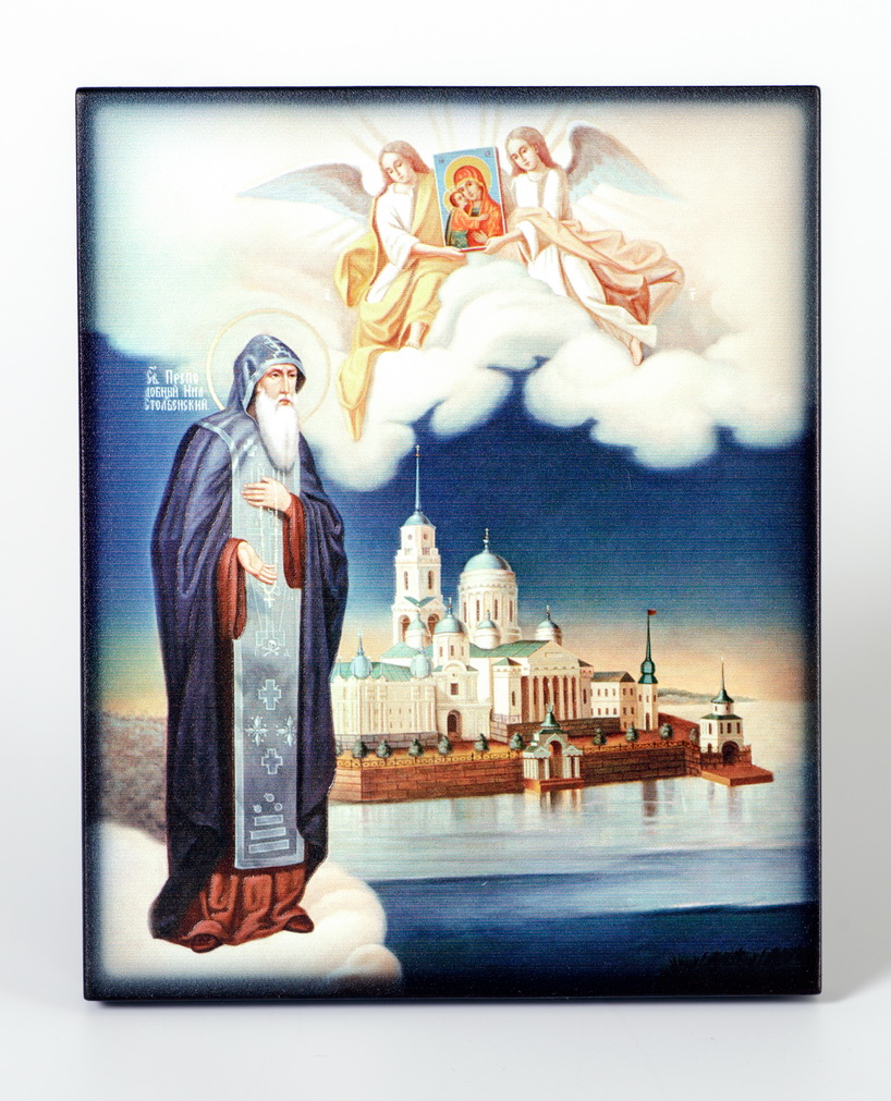Икона на доске 13х15 объёмная печать, лак Нил Столобенский