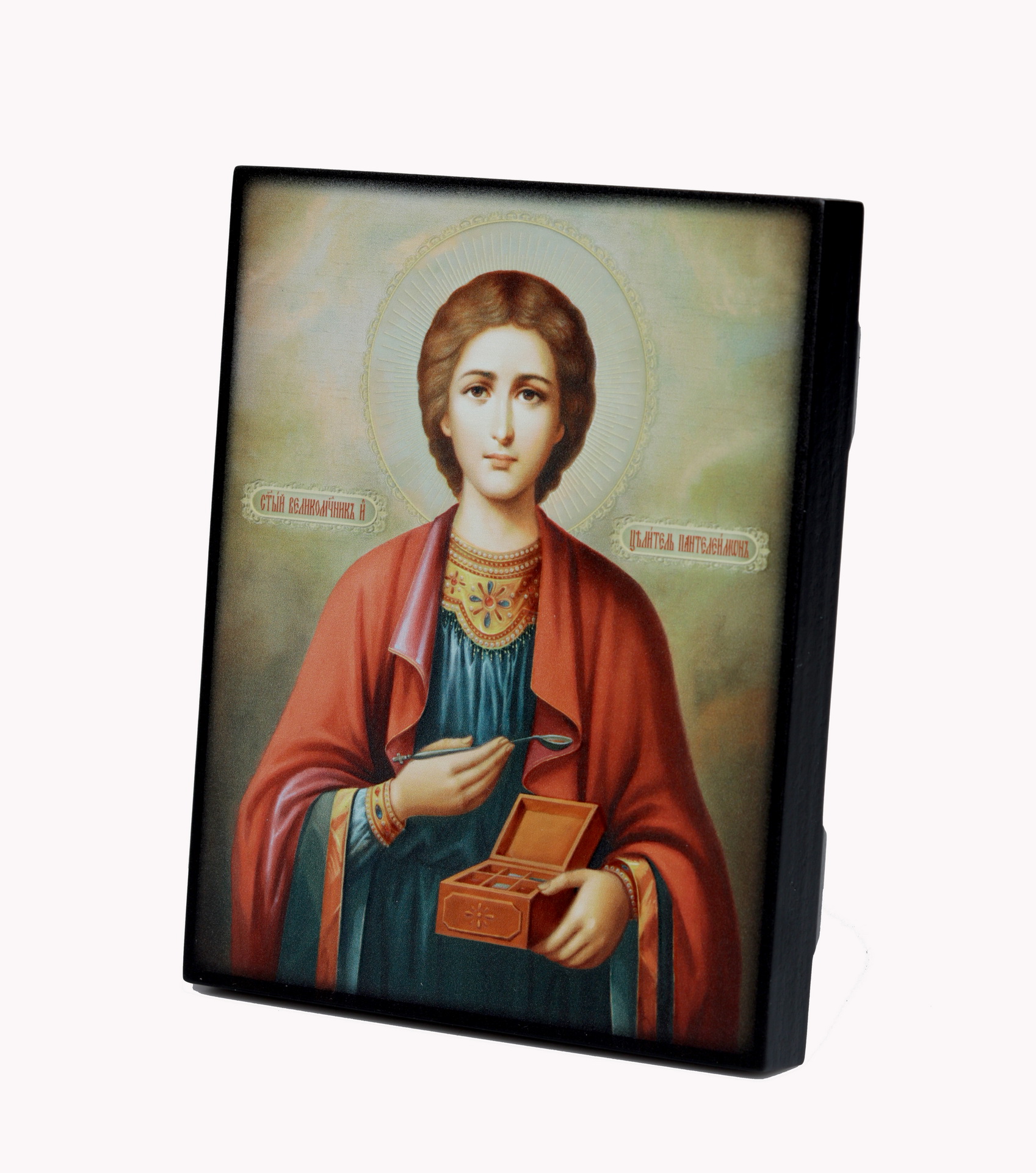 Икона на доске 13х15 объёмная печать, лак Пантелеимон 3