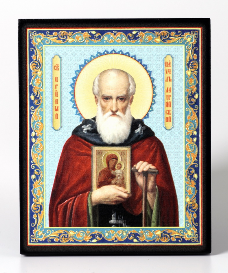Икона на доске 13х15 объёмная печать, лак Павел Латрийский