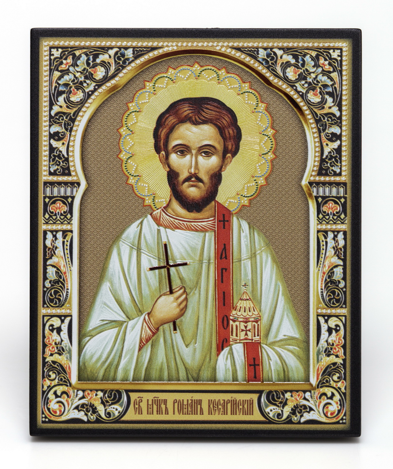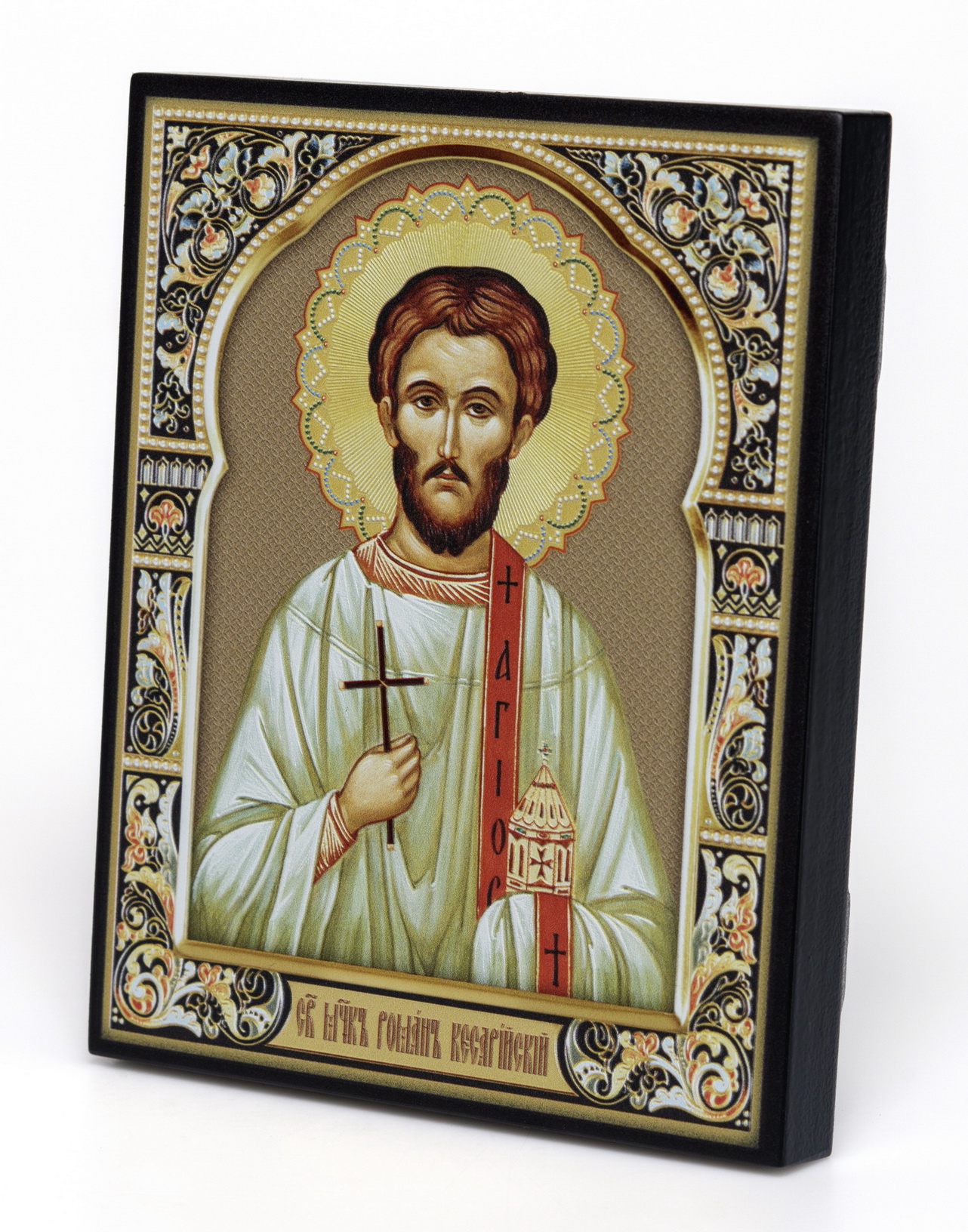 Икона на доске 13х15 объёмная печать, лак Роман Кесарийский,