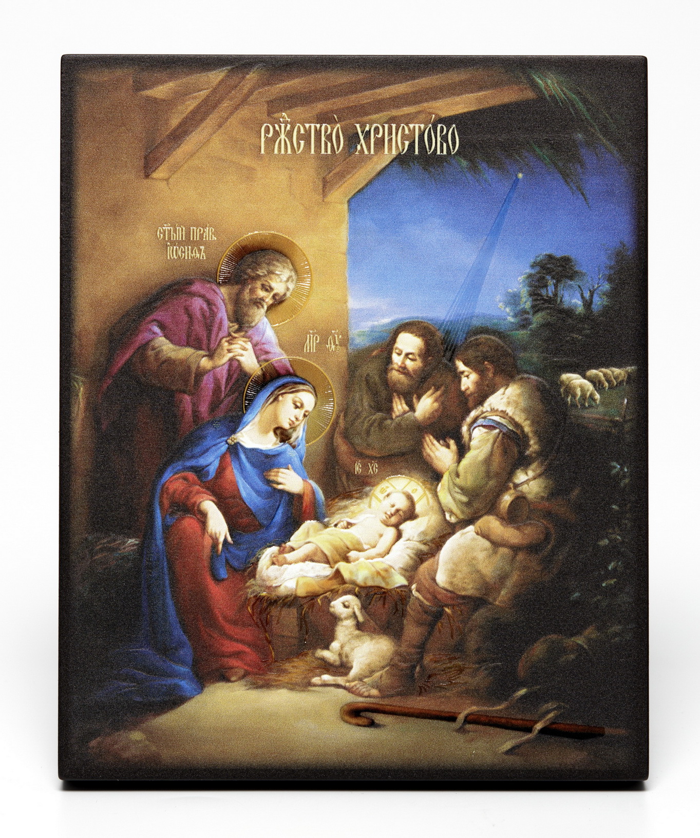 Икона на доске 13х15 объёмная печать, лак Рождество Христово 4