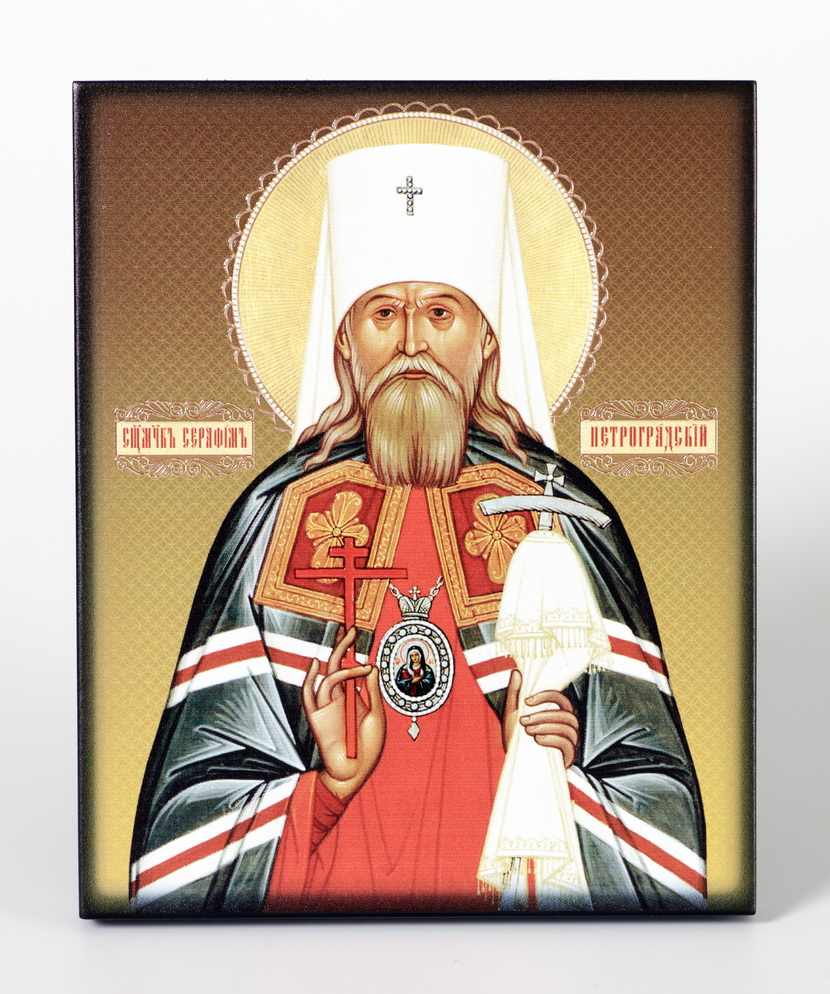 Икона на доске 13х15 объёмная печать, лак Серафим Петроградский