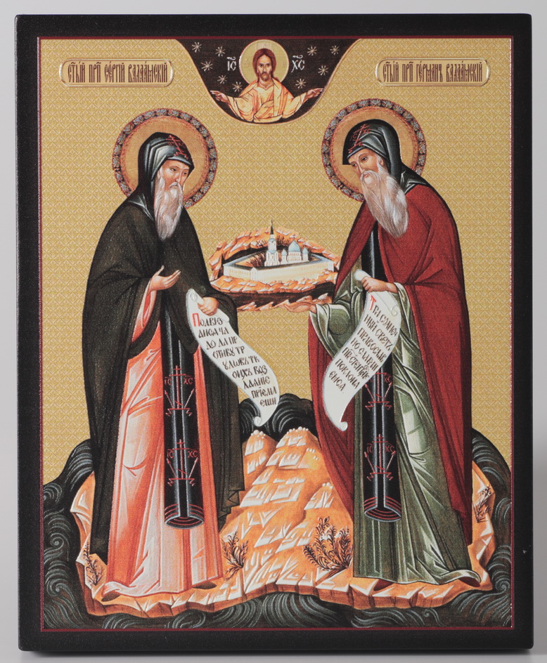 Икона на доске 13х15 объёмная печать, лак Сергий и Герман Валаамские
