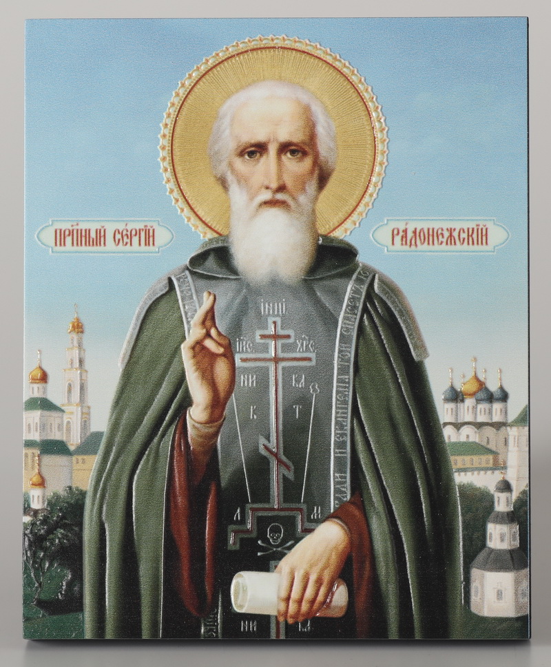 Икона на доске 13х15 объёмная печать, лак Сергий Радонежский 1