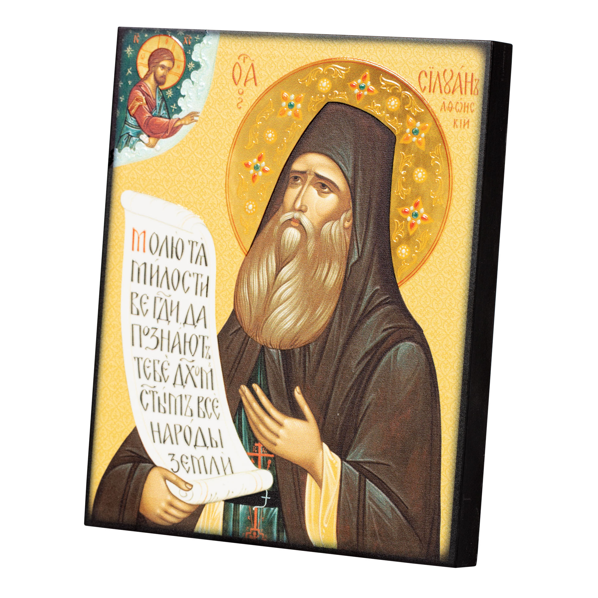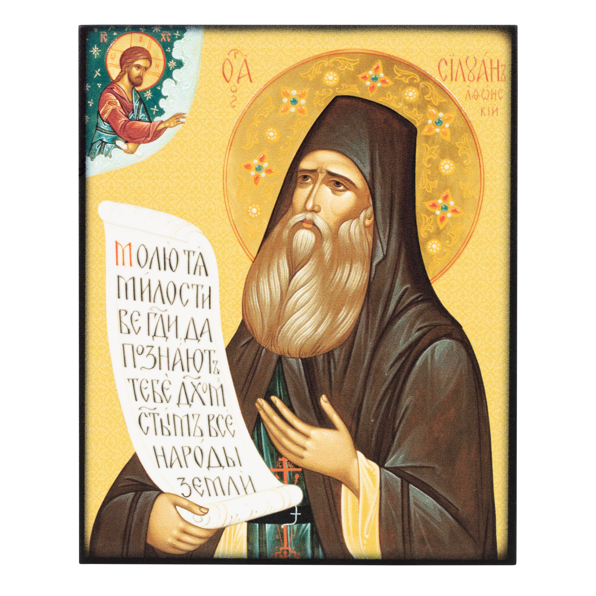 Икона на доске 13х15 объёмная печать, лак Силуан Афонский 2