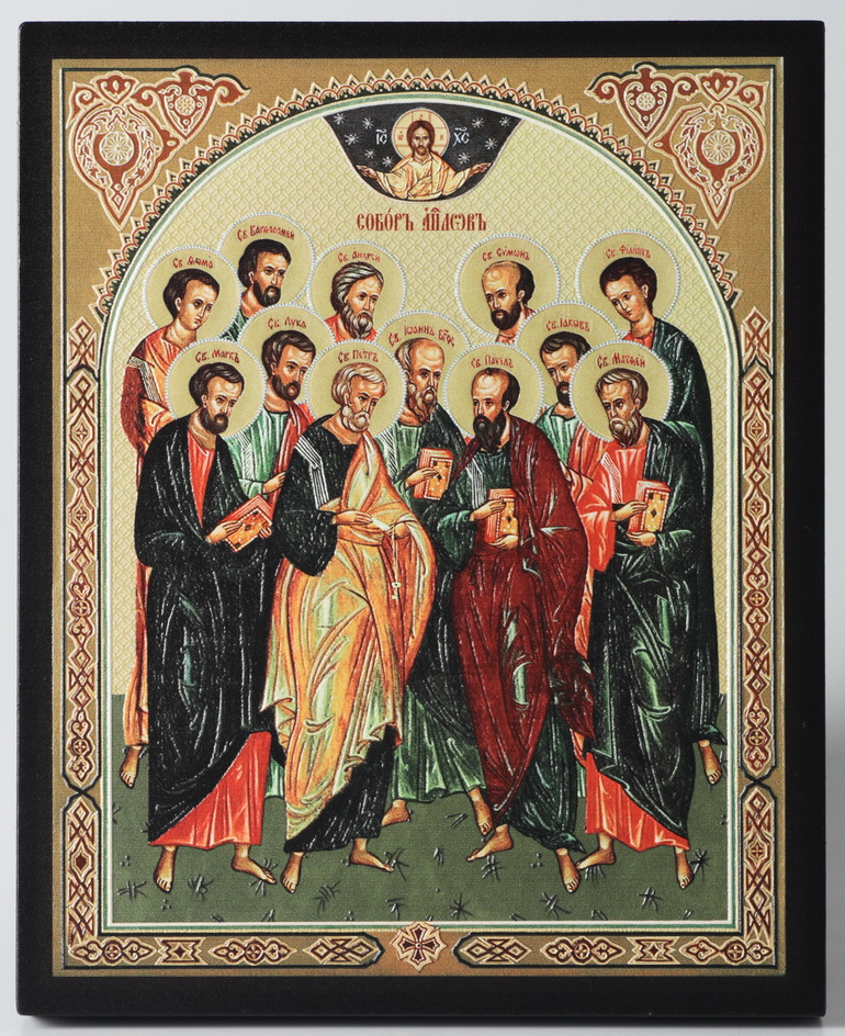 Икона на доске 13х15 объёмная печать, лак Собор Апостолов