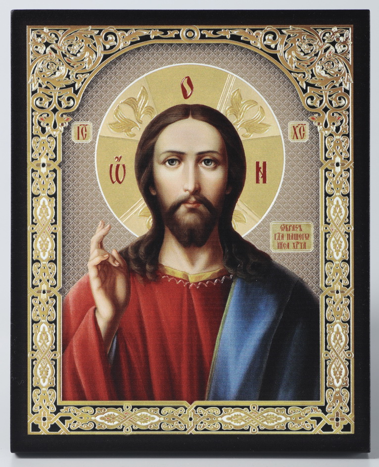 Икона на доске 13х15 объёмная печать, лак Спаситель 3