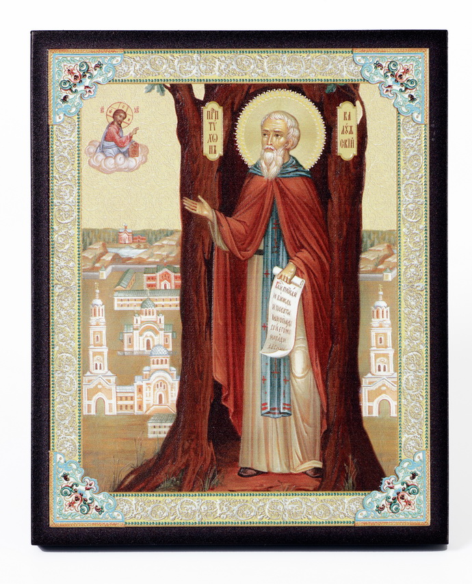 Икона на доске 13х15 объёмная печать, лак Тихон Калужский