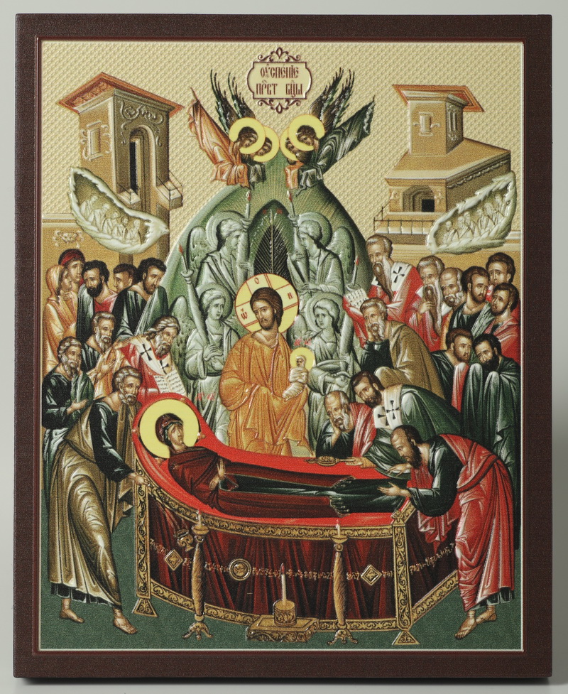 Икона на доске 13х15 объёмная печать, лак Успение Богородицы 1