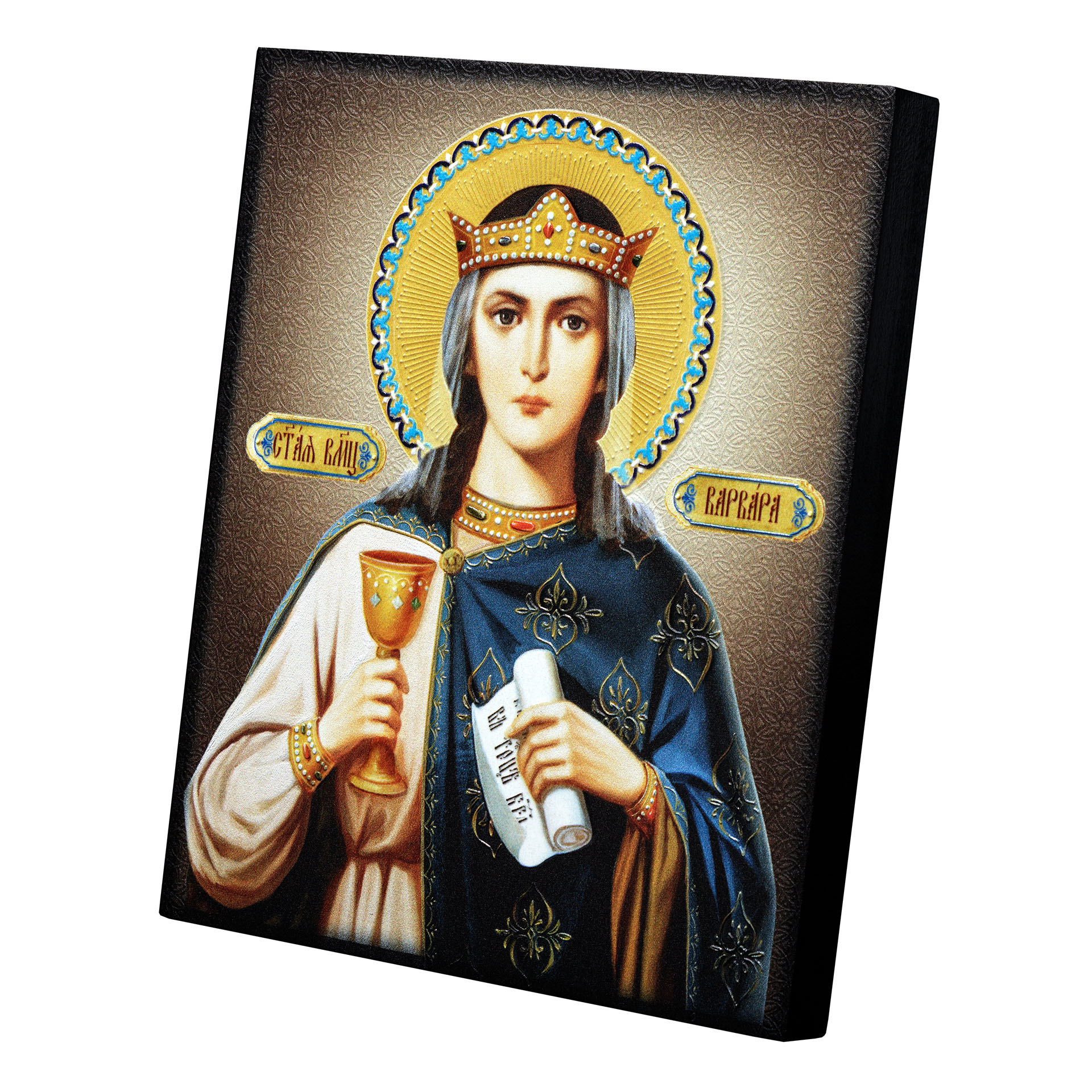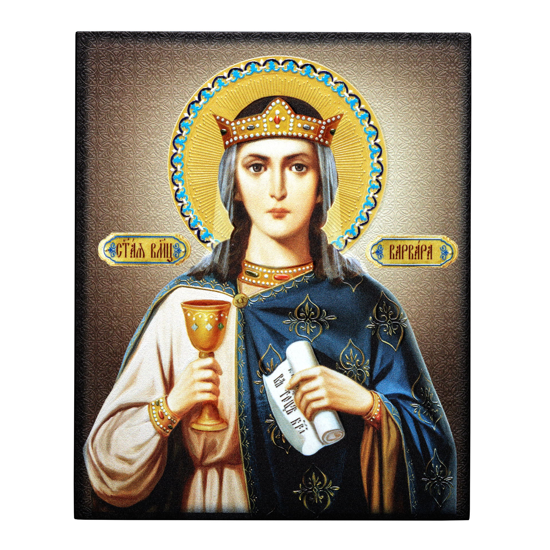 Икона на доске 13х15 объёмная печать, лак Варвара 2,