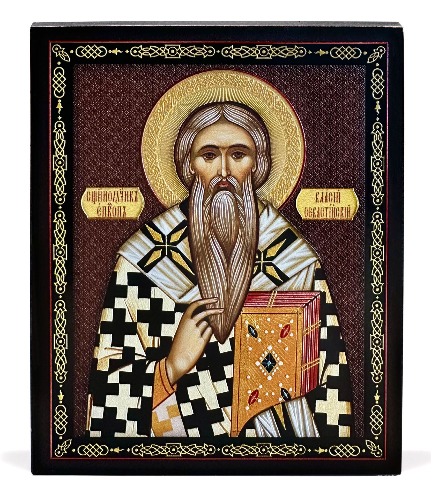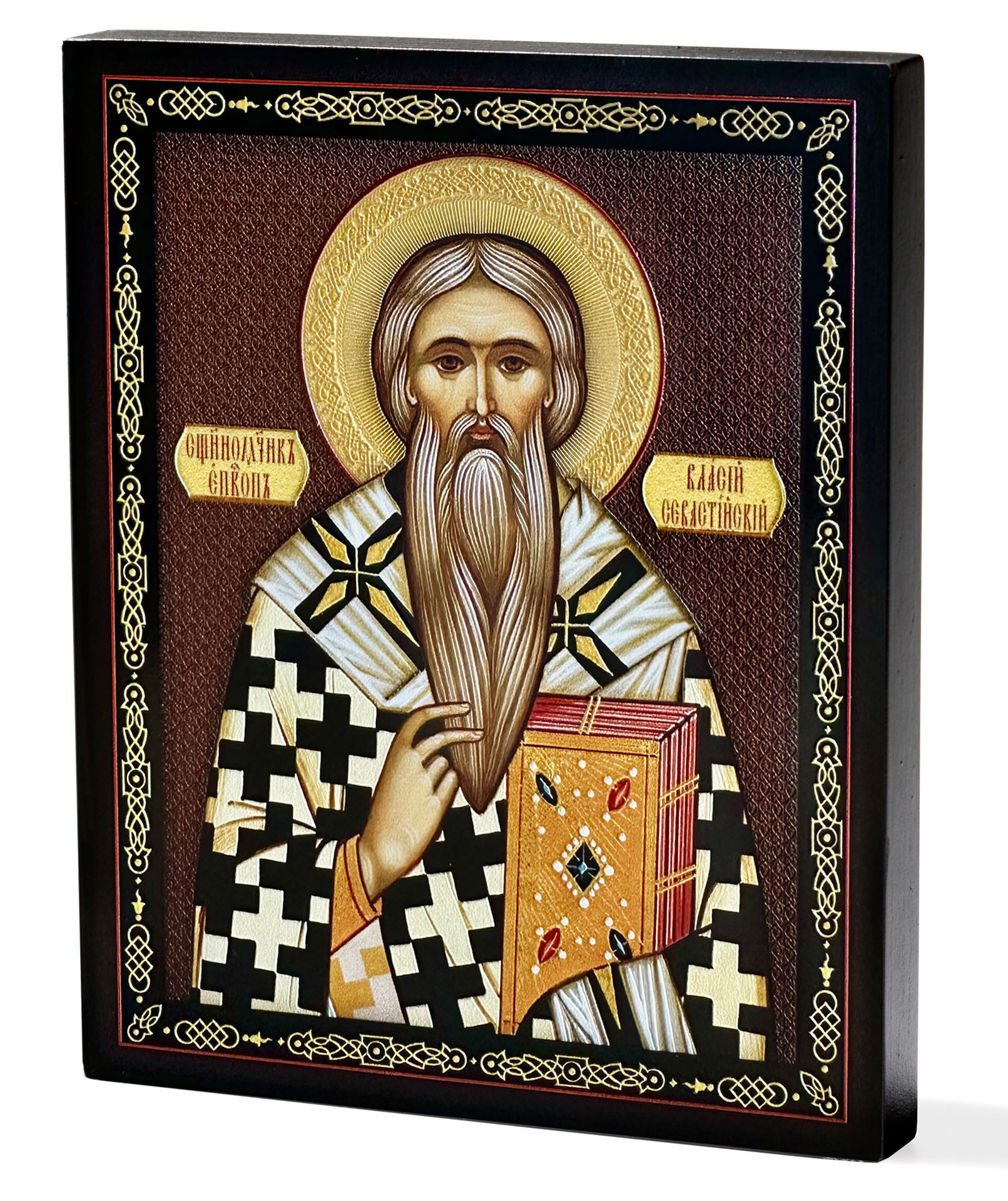 Икона на доске 13х15 объёмная печать, лак Власий Севастийский 2