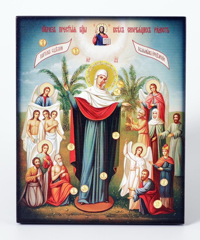 Икона на доске 13х15 объёмная печать, лак Всех скорбящих Радость
