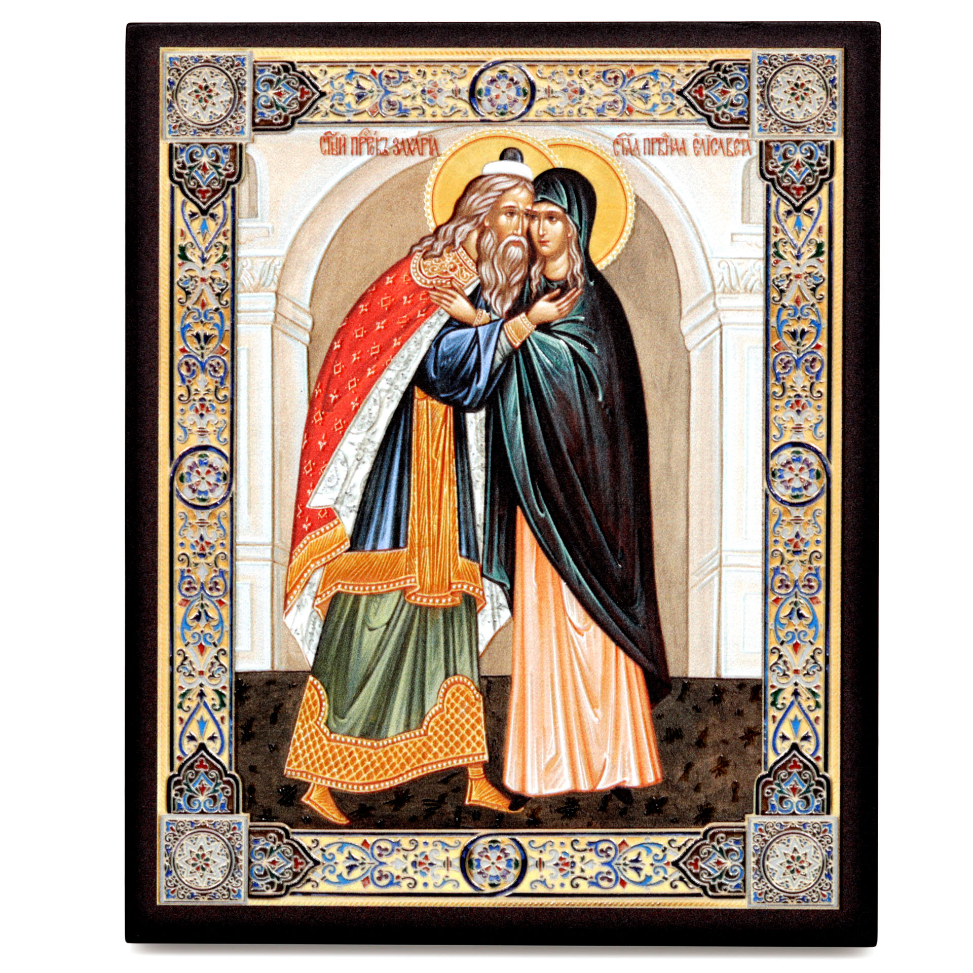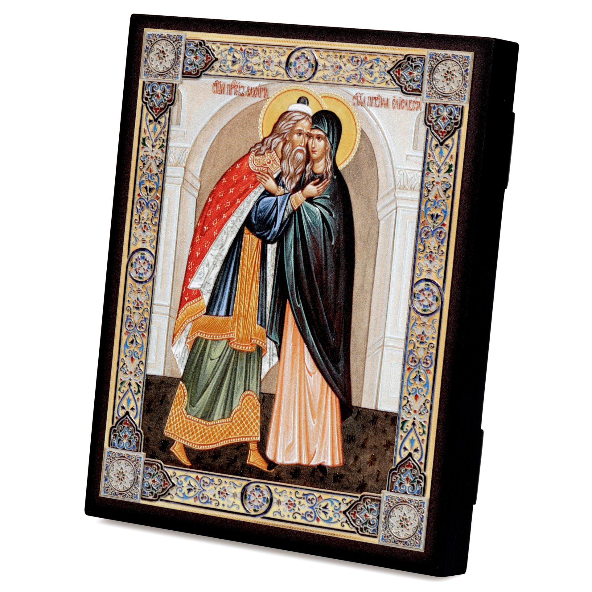 Икона на доске 13х15 объёмная печать, лак Захария и Елизавета,