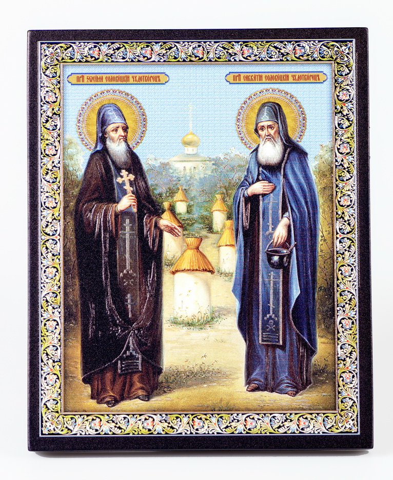 Икона на доске 13х15 объёмная печать, лак Зосима и Савватий