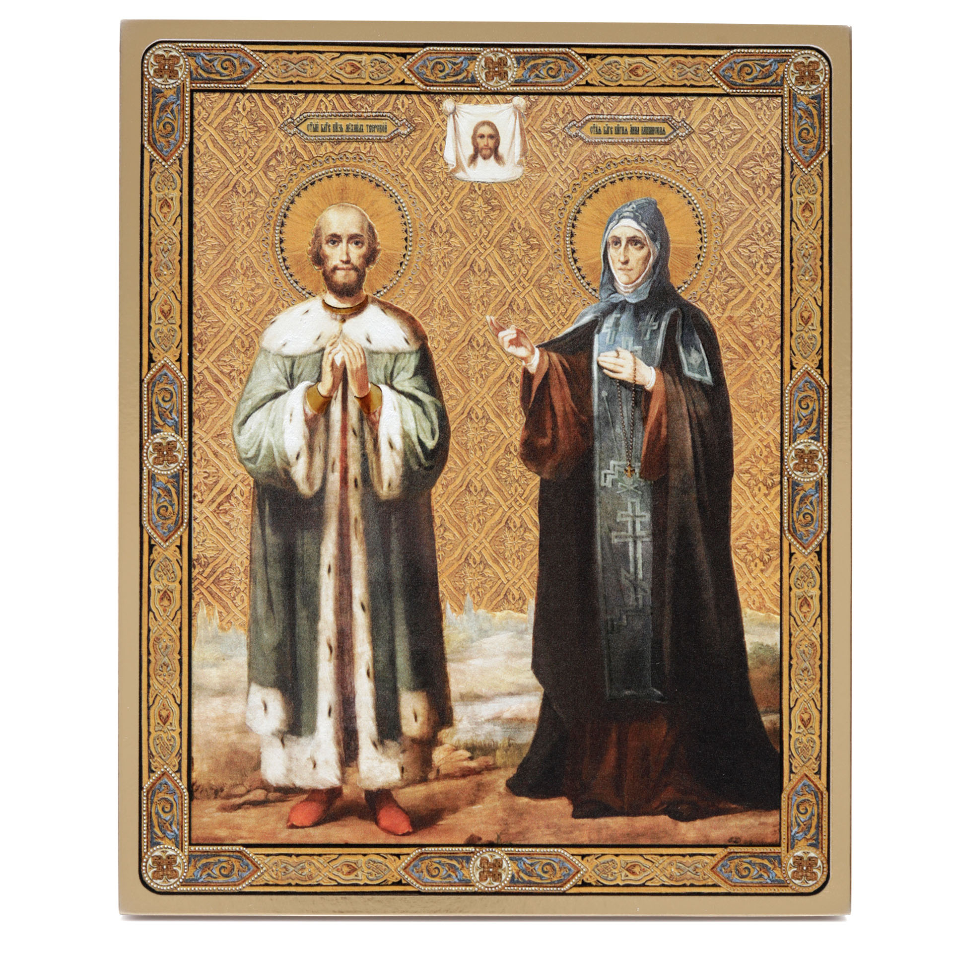 Икона на доске 13х15 золоченое покрытие, объёмная печать, лак Анна Кашинская+Михаил Тверской,