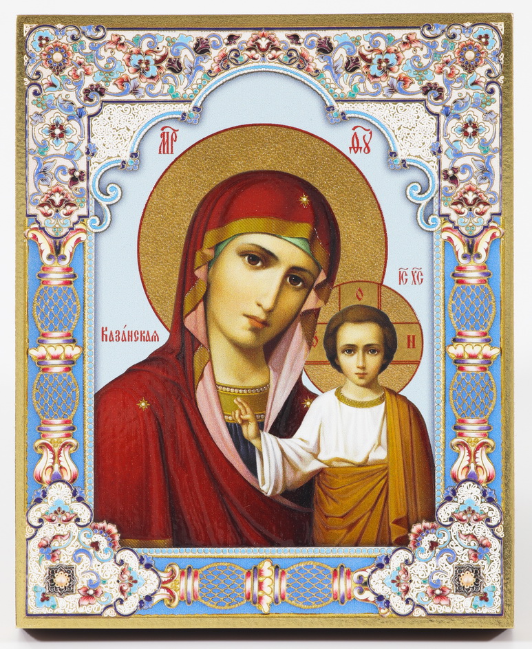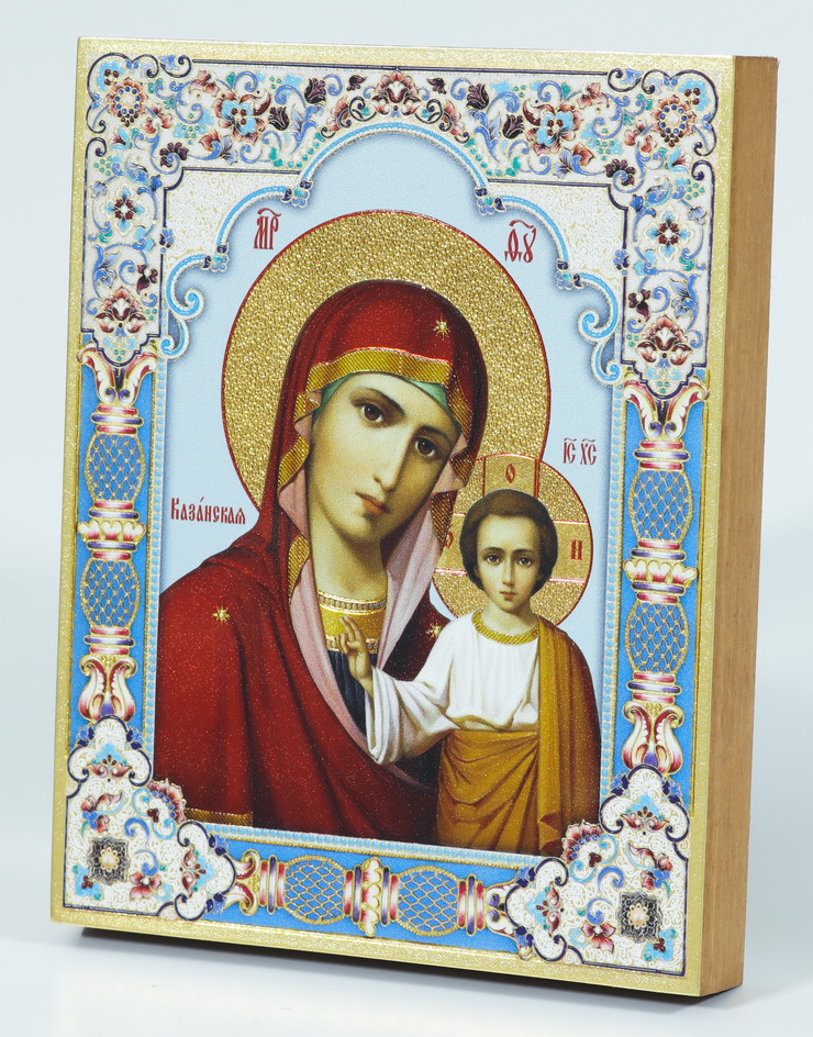 Икона на доске 13х15 золоченое покрытие, объёмная печать, лак Казанская БМ 1
