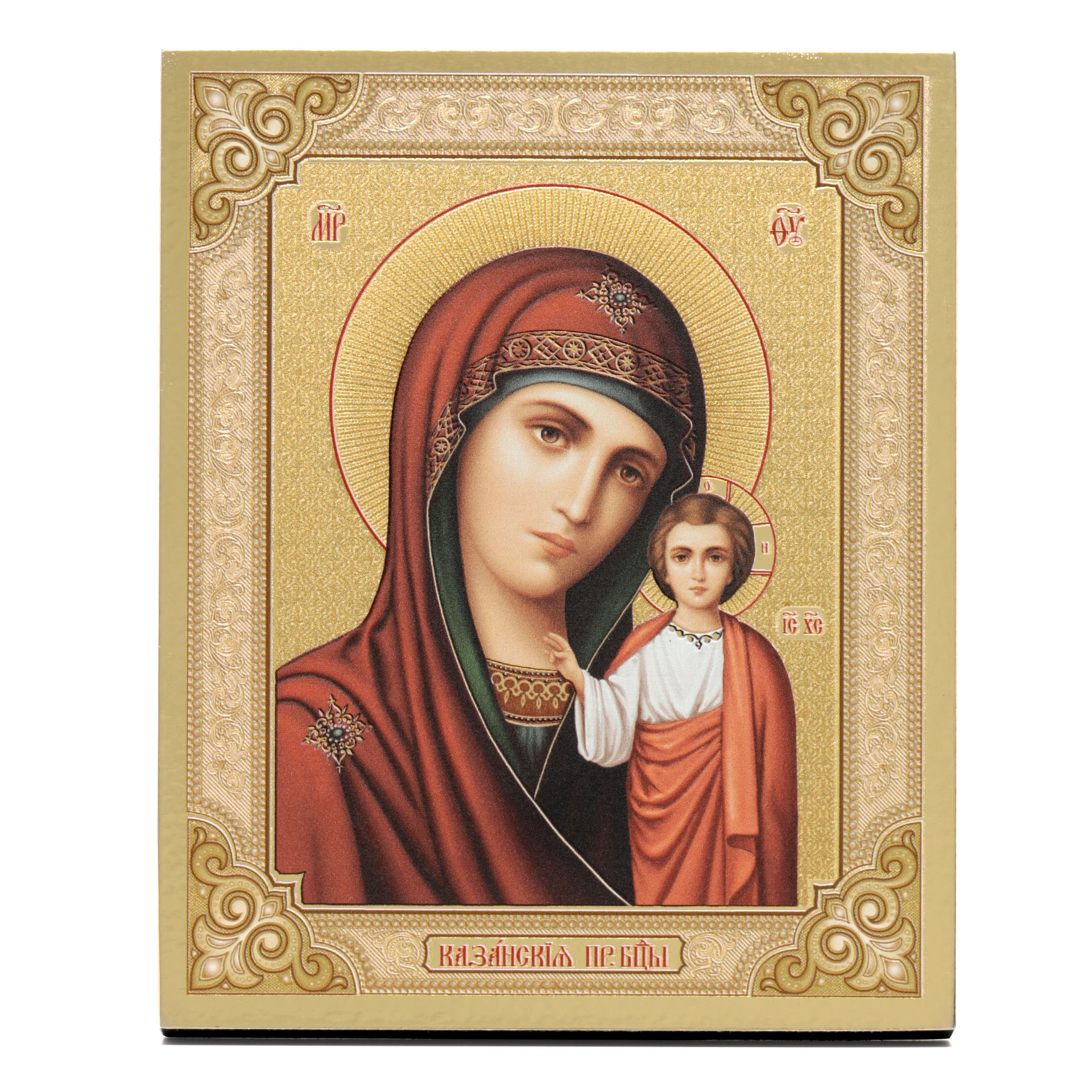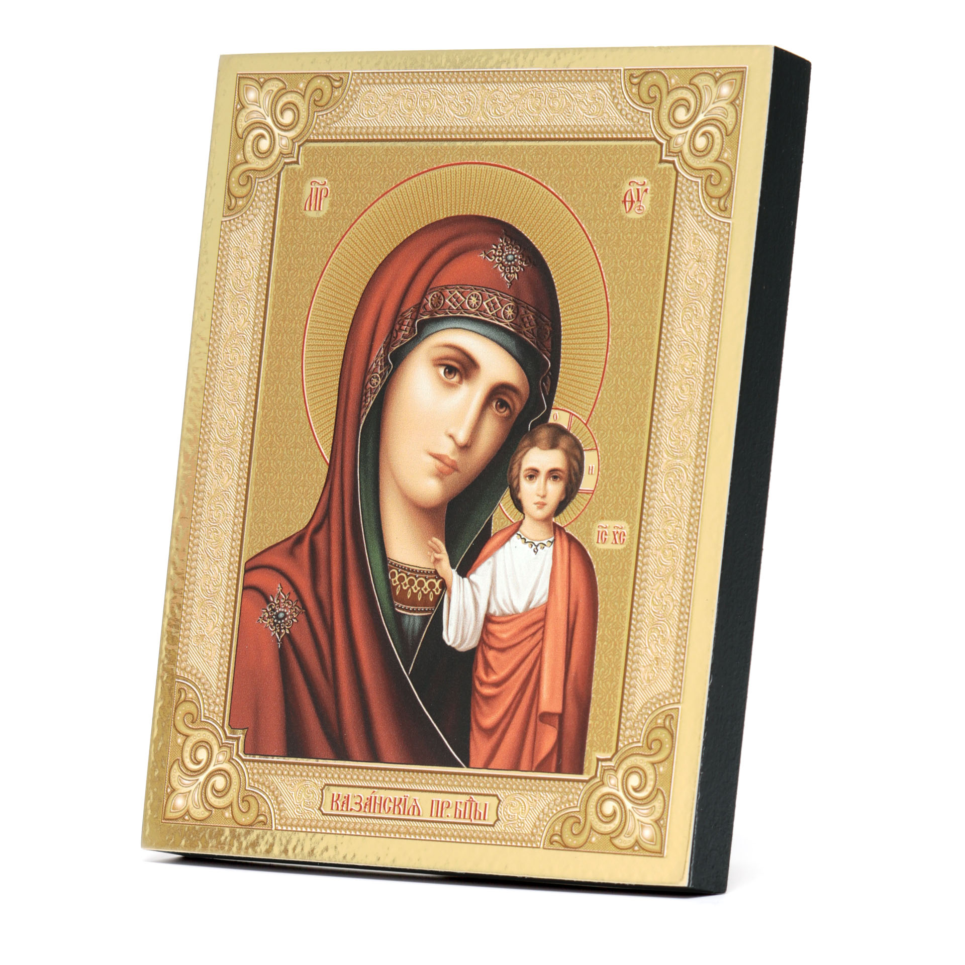 Икона на доске 13х15 золоченое покрытие, объёмная печать, лак Казанская БМ 3,