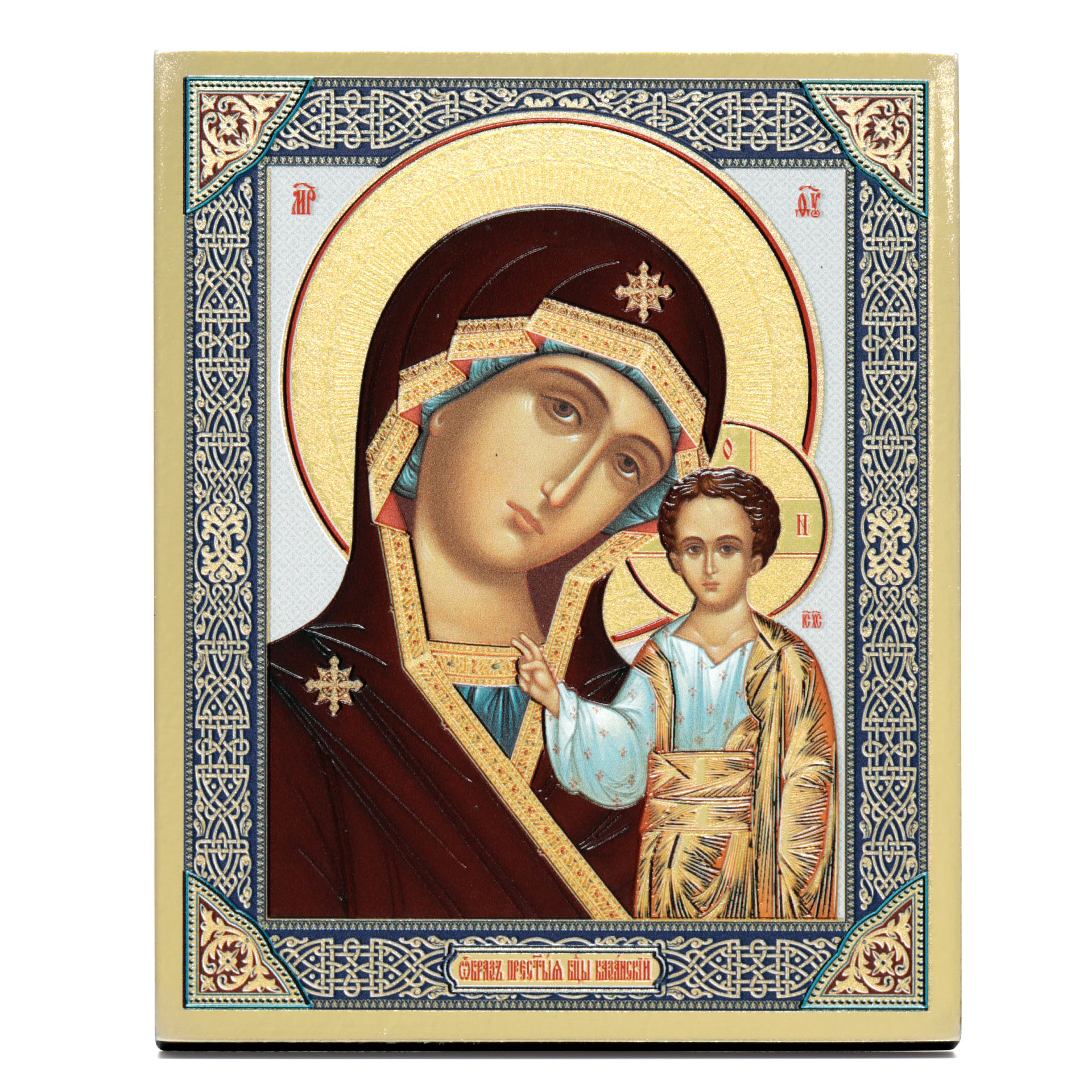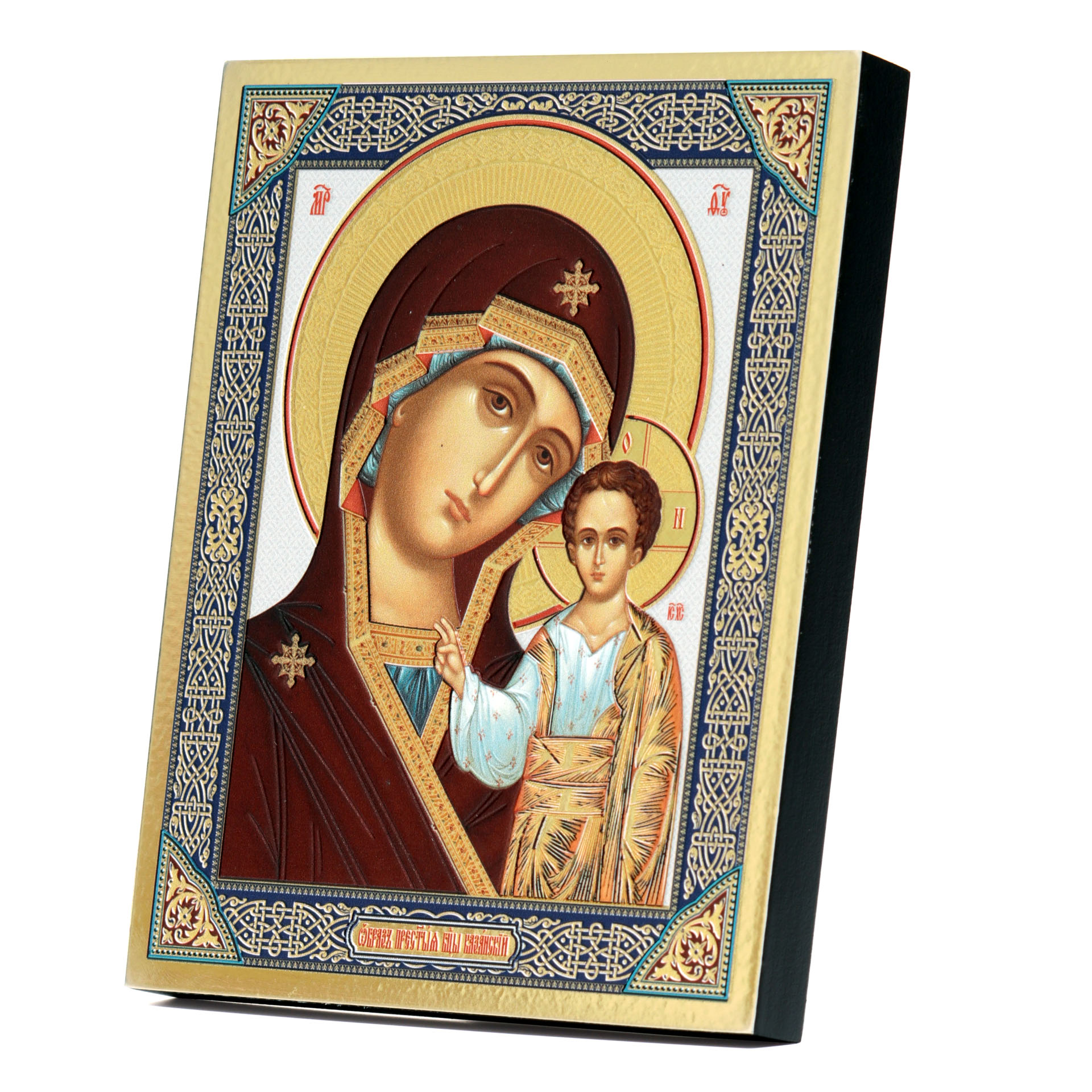 Икона на доске 13х15 золоченое покрытие, объёмная печать, лак Казанская БМ 6