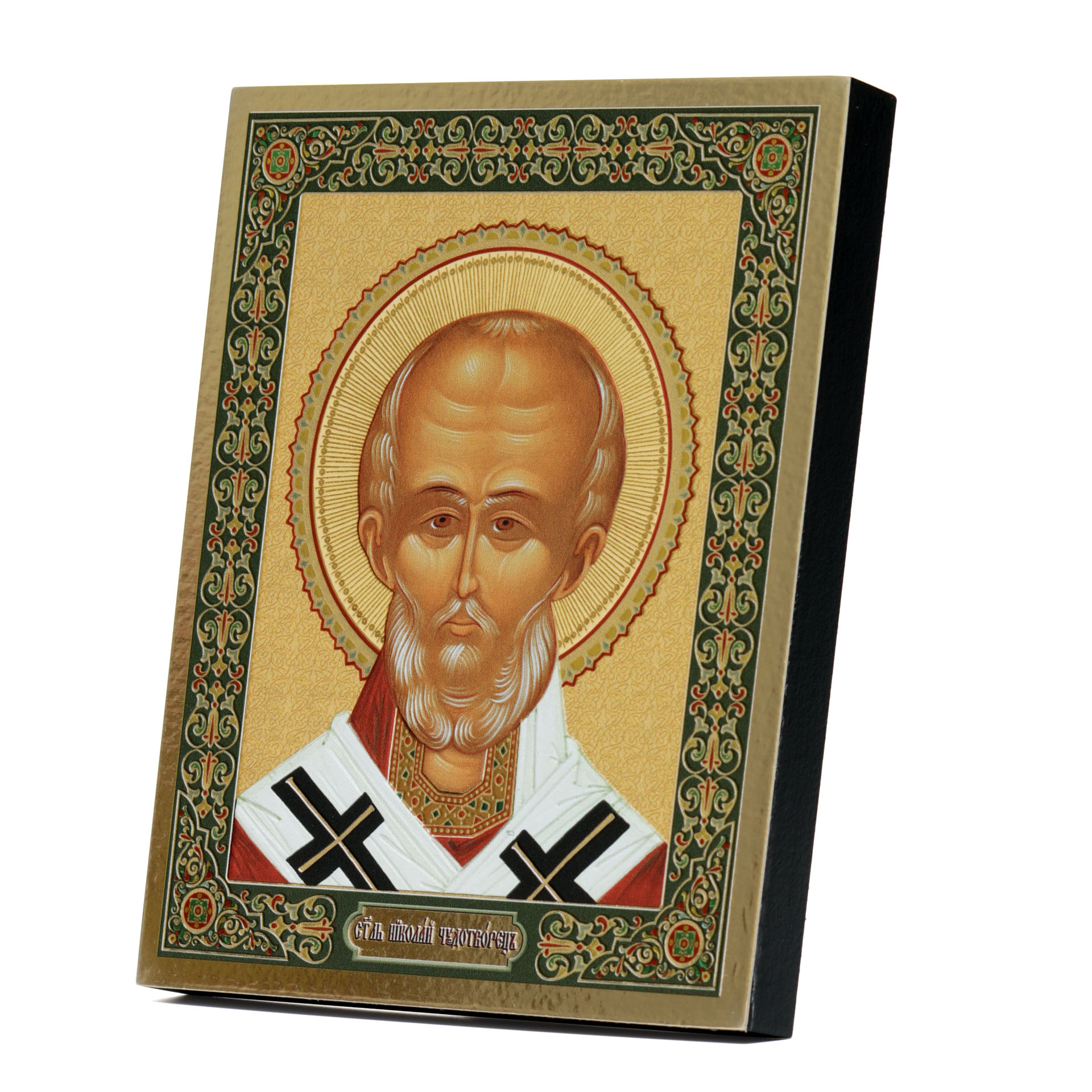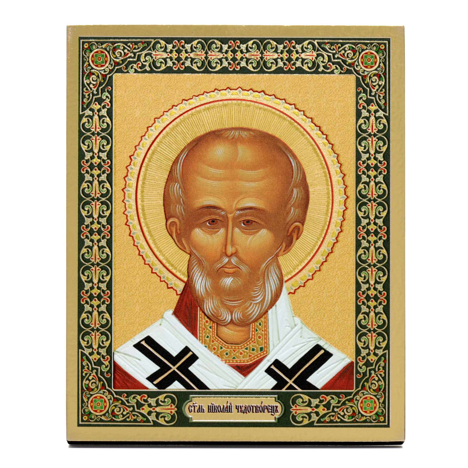 Икона на доске 13х15 золоченое покрытие, объёмная печать, лак Николай Чудотворец 2