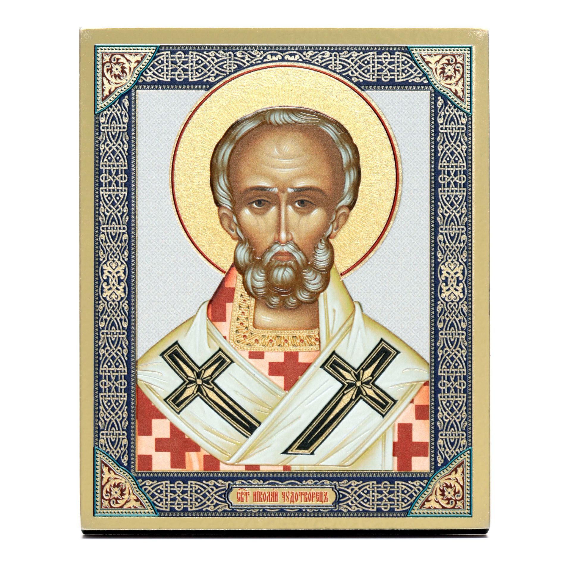 Икона на доске 13х15 золоченое покрытие, объёмная печать, лак Николай Чудотворец 6