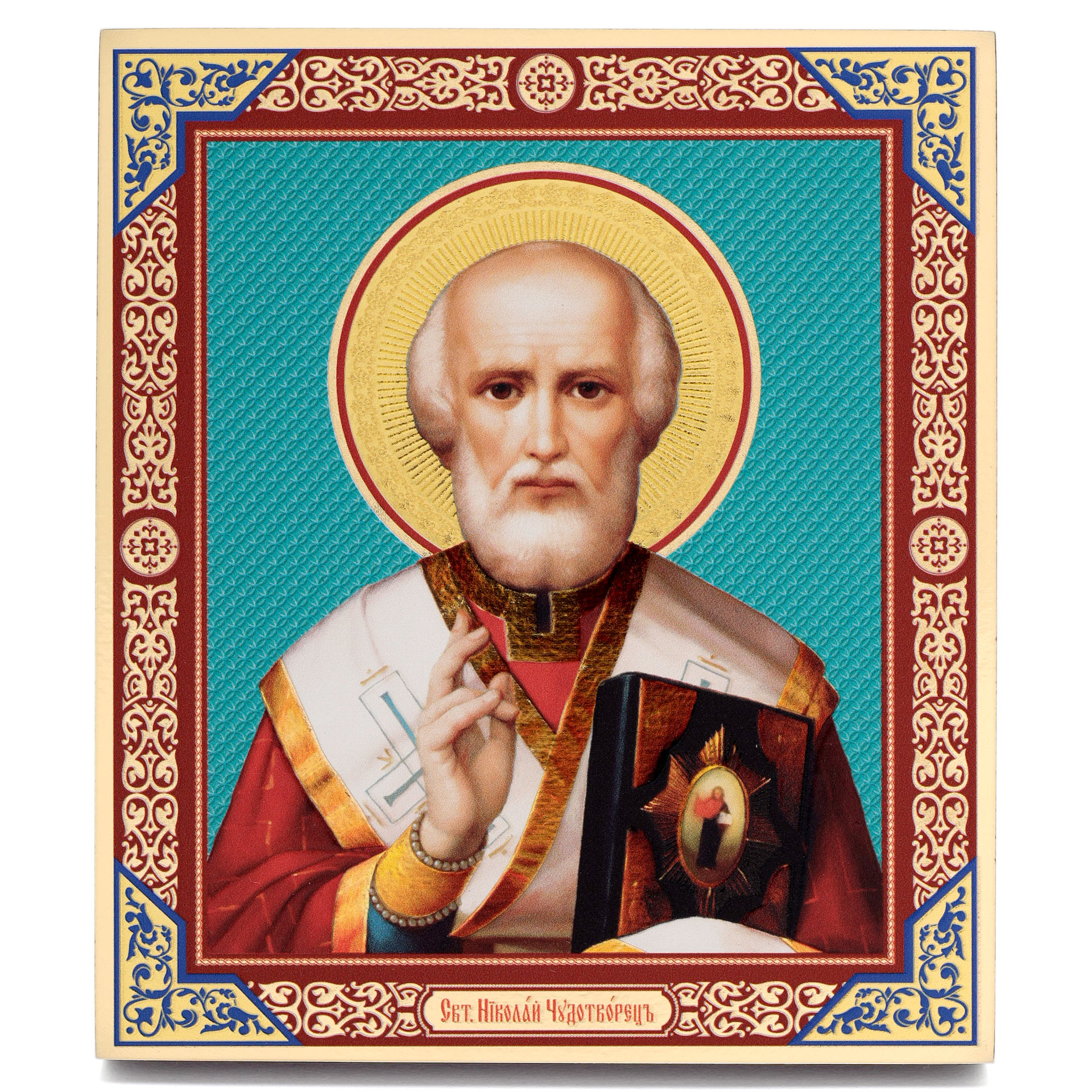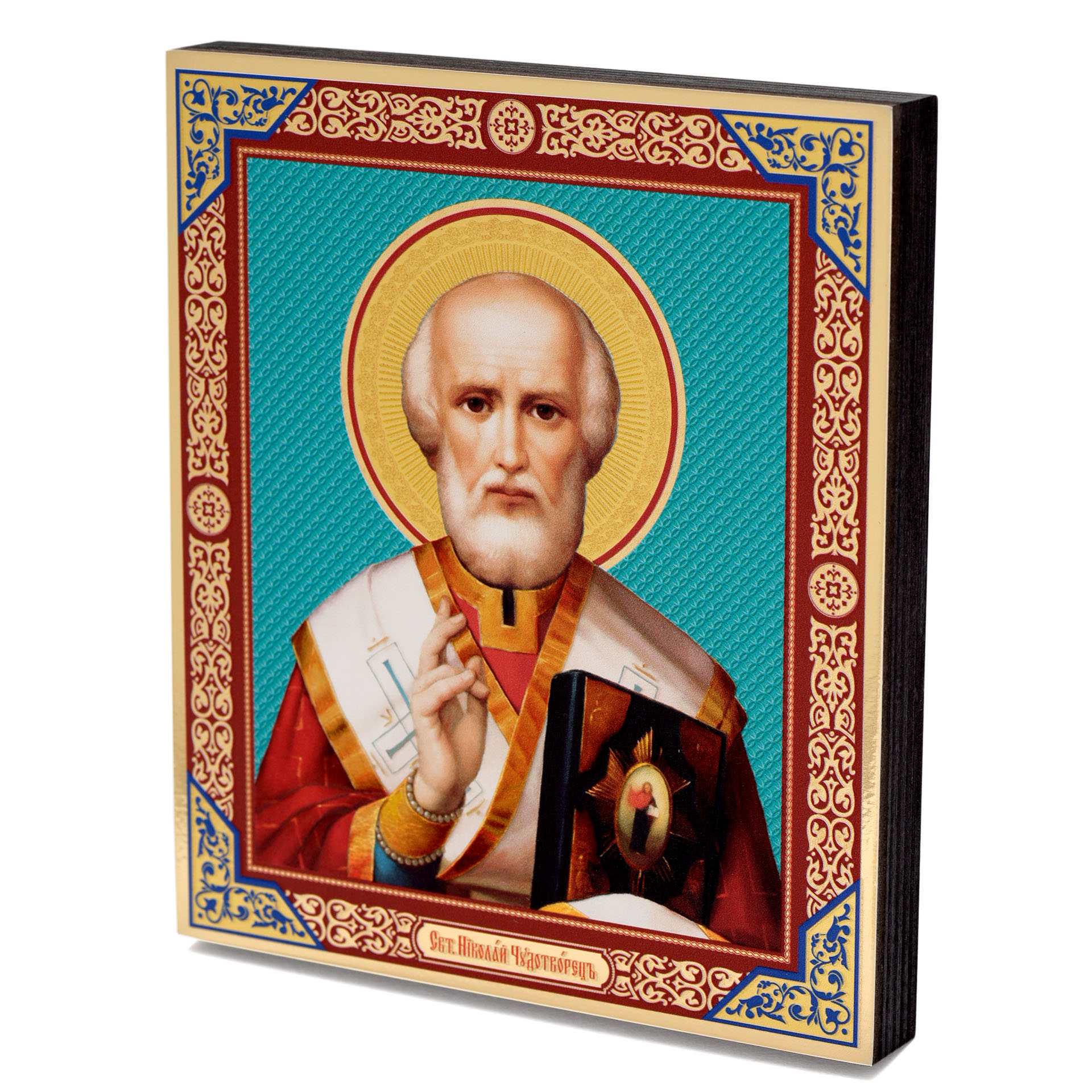 Икона на доске 13х15 золоченое покрытие, объёмная печать, лак Николай Чудотворец