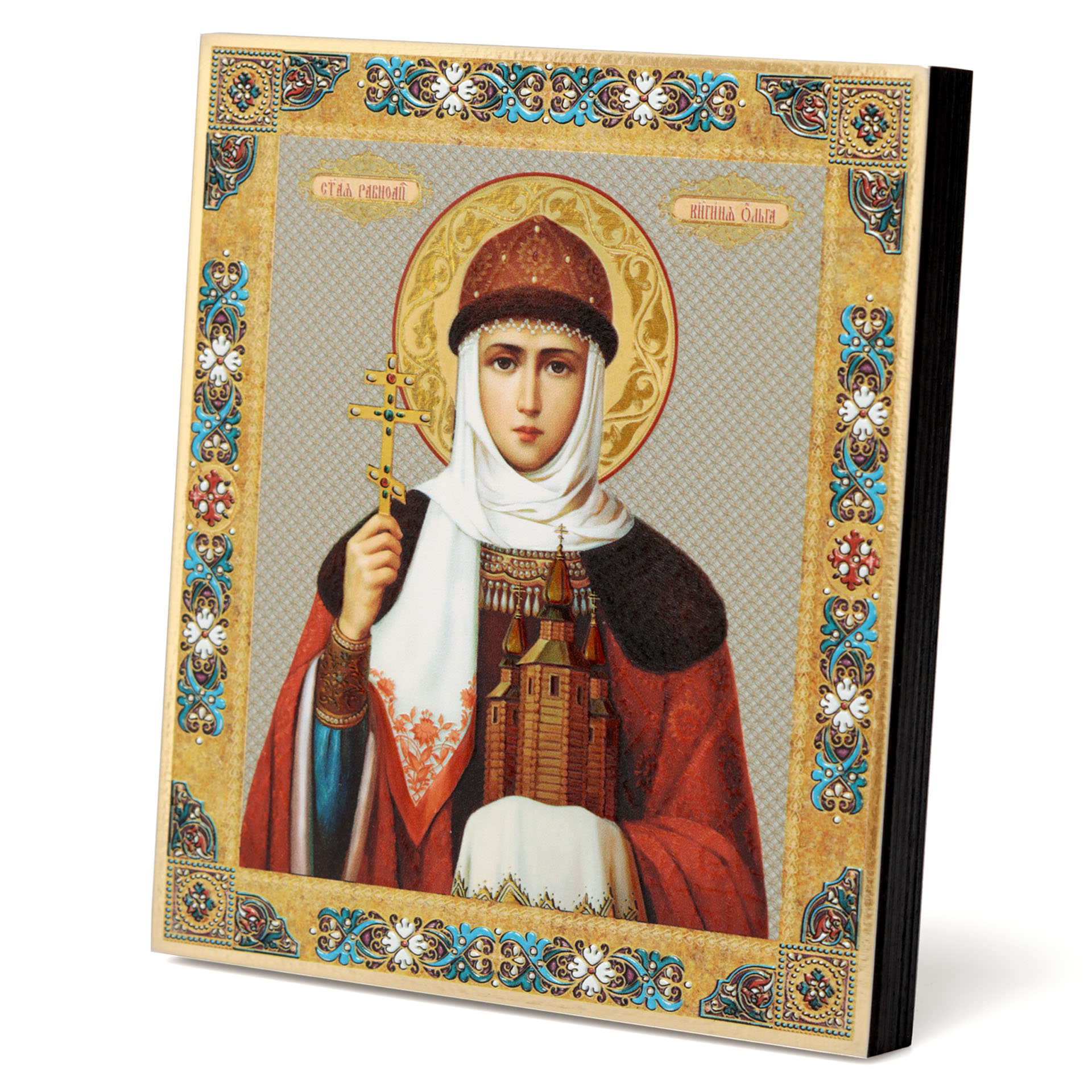 Икона на доске 13х15 золоченое покрытие, объёмная печать, лак Ольга,