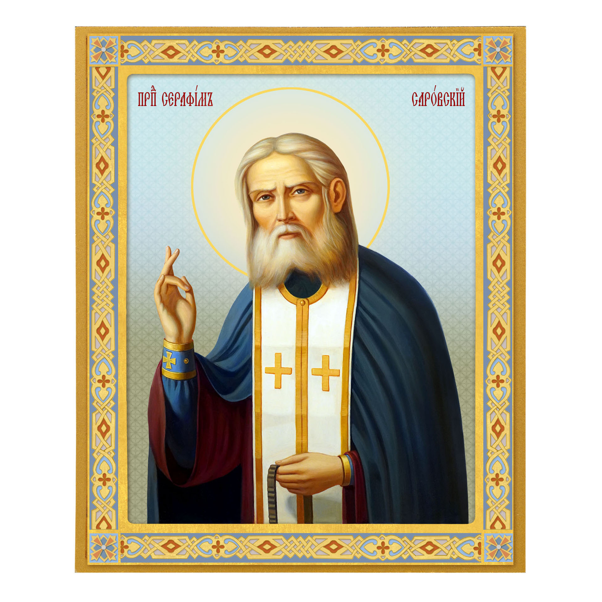 Икона на доске 13х15 золоченое покрытие, объёмная печать, лак Серафим Саровский 1