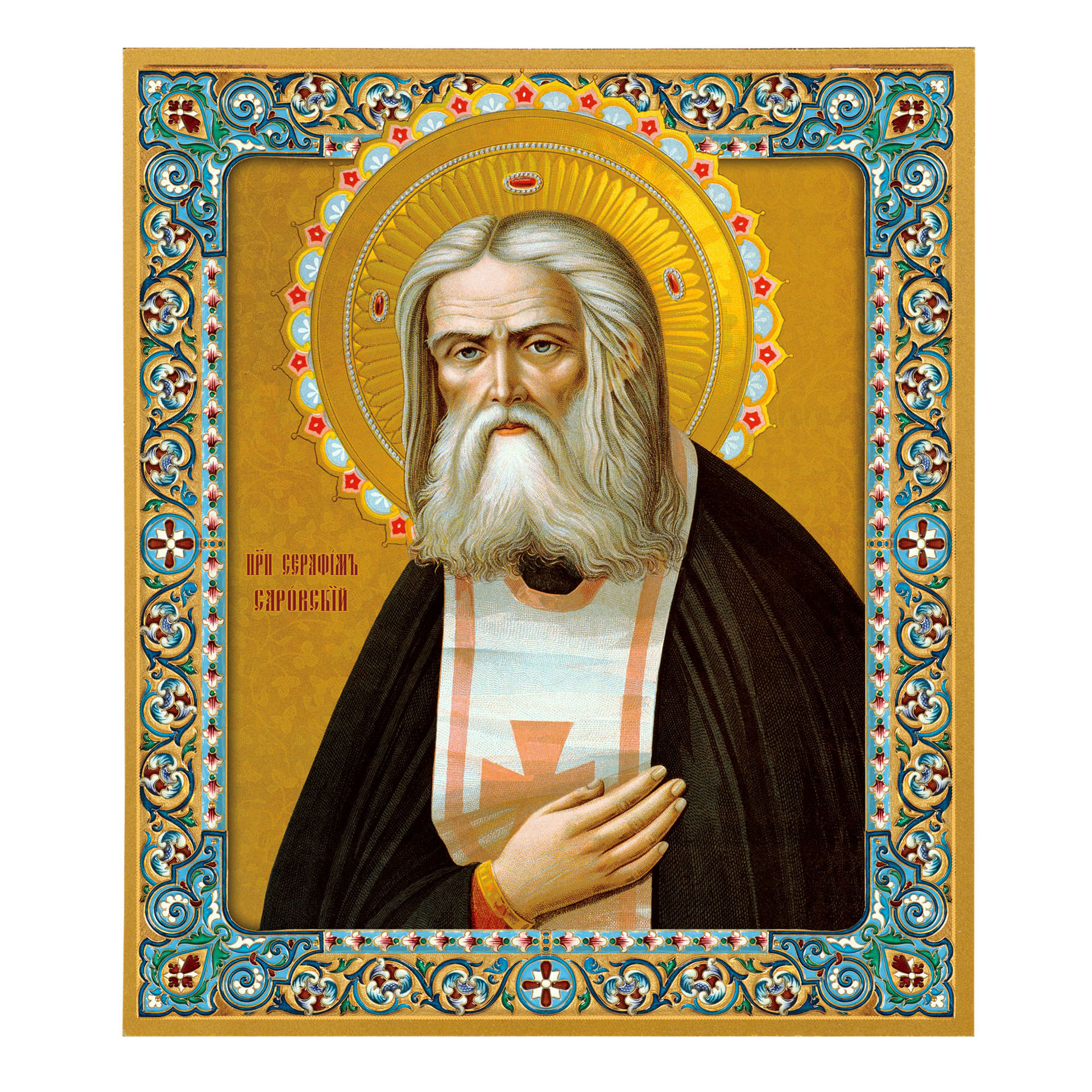 Икона на доске 13х15 золоченое покрытие, объёмная печать, лак Серафим Саровский 3