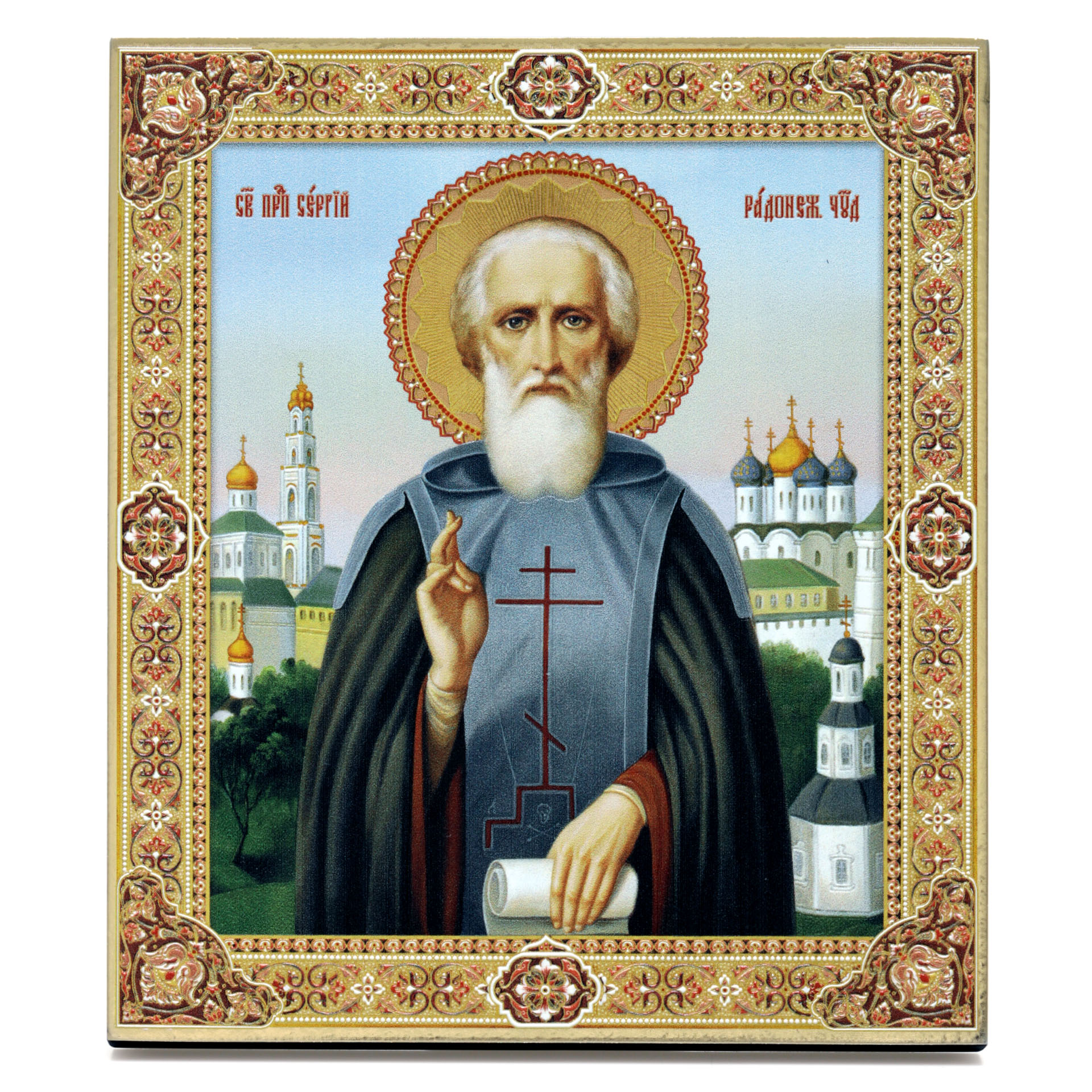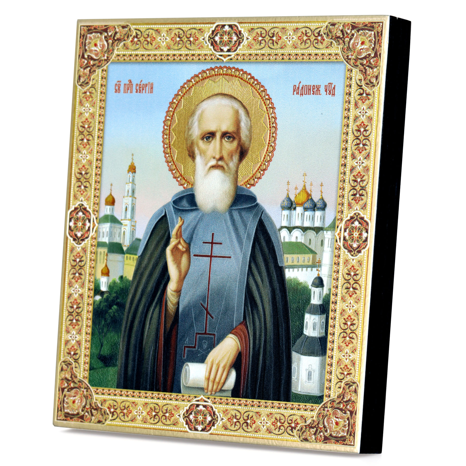 Икона на доске 13х15 золоченое покрытие, объёмная печать, лак Сергий Радонежский 1