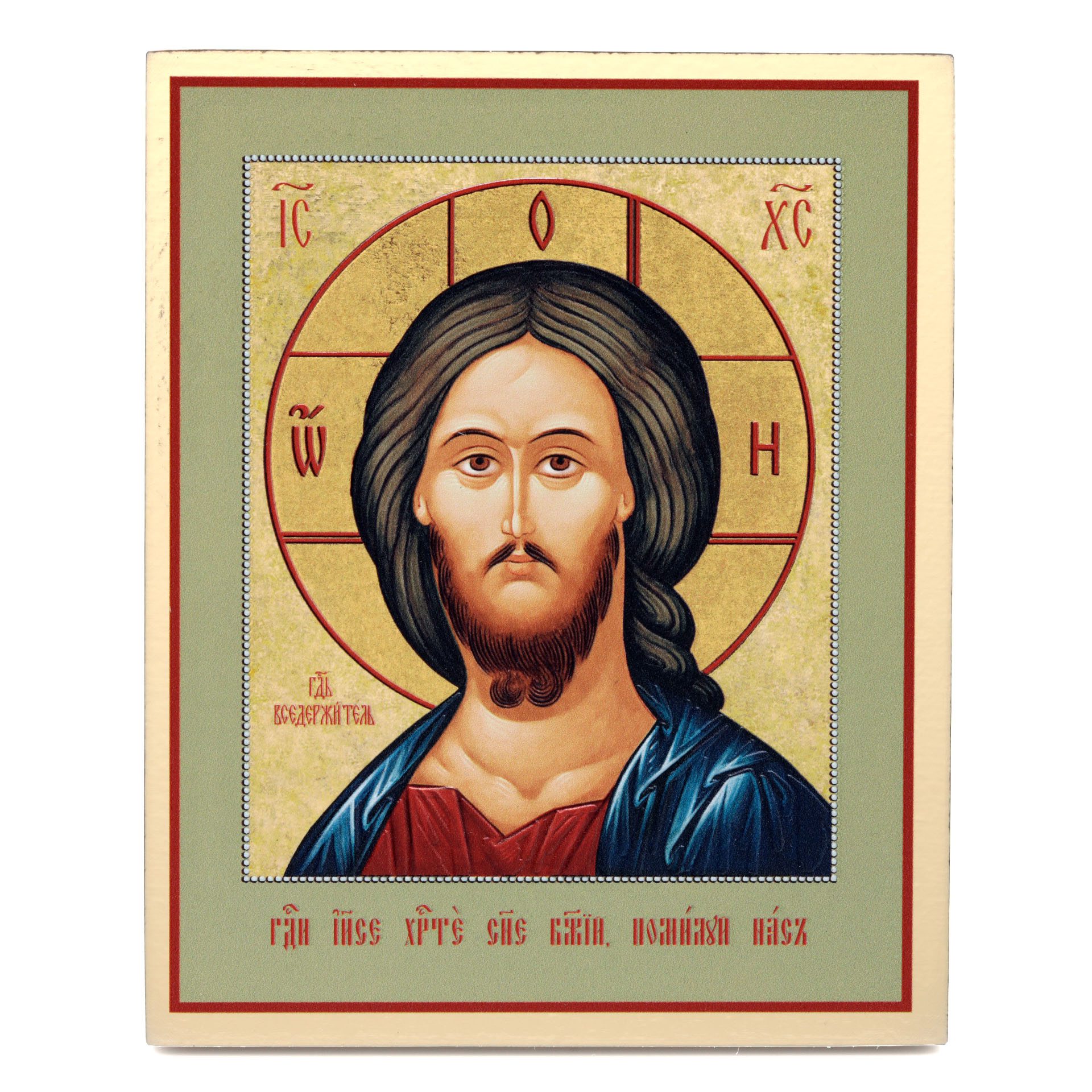 Икона на доске 13х15 золоченое покрытие, объёмная печать, лак Спаситель с молитвой