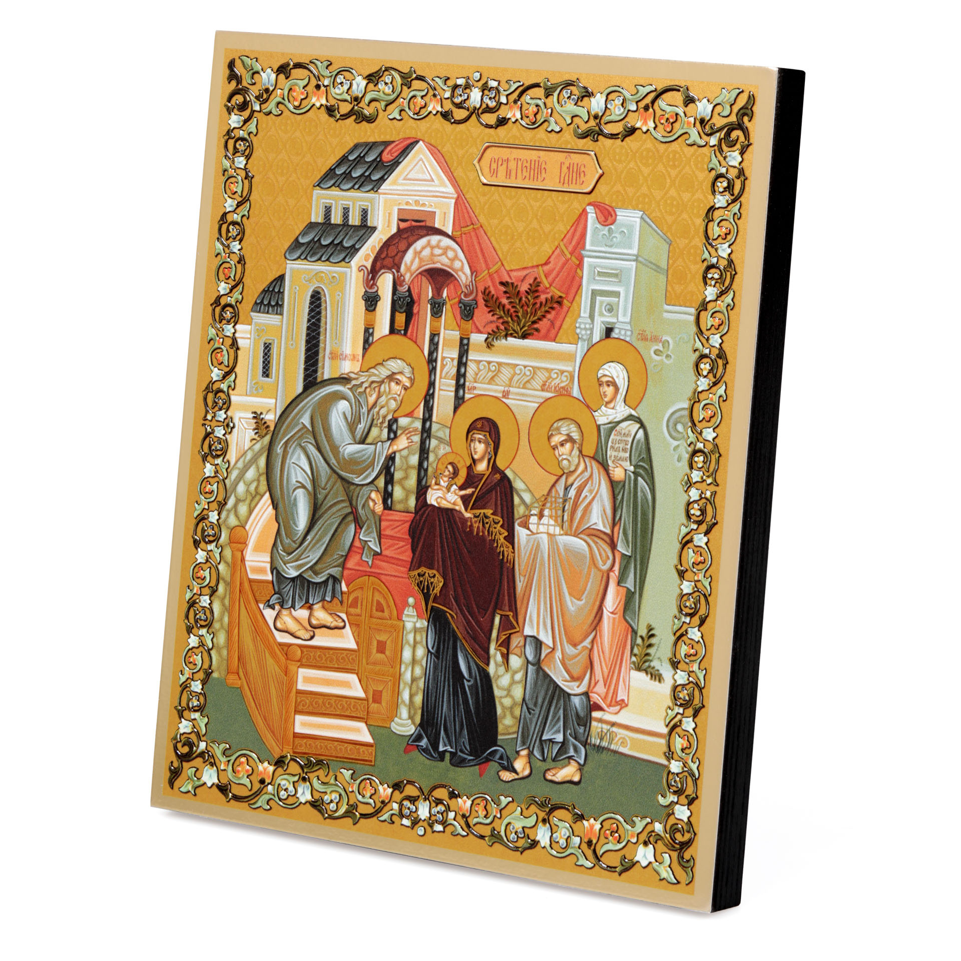 Икона на доске 13х15 золоченое покрытие, объёмная печать, лак Сретение Господне
