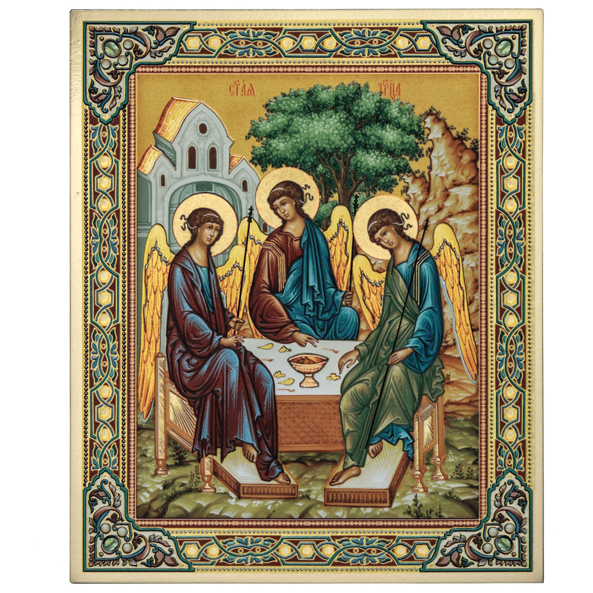 Икона на доске 13х15 золоченое покрытие, объёмная печать, лак Троица 2