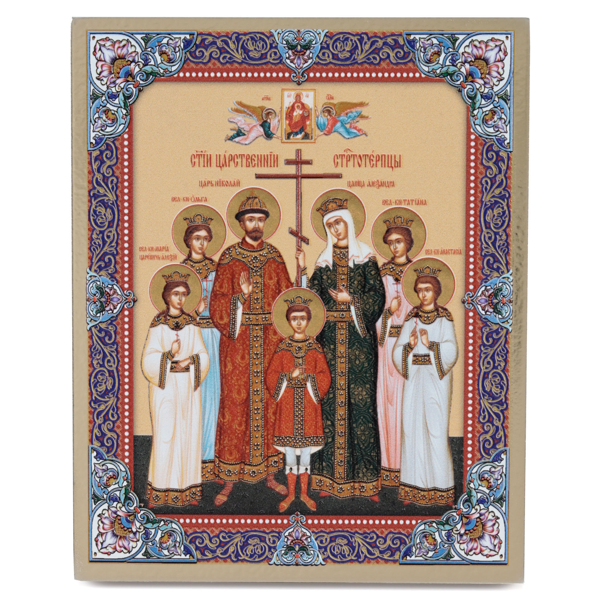 Икона на доске 13х15 золоченое покрытие, объёмная печать, лак Царская семья 4,