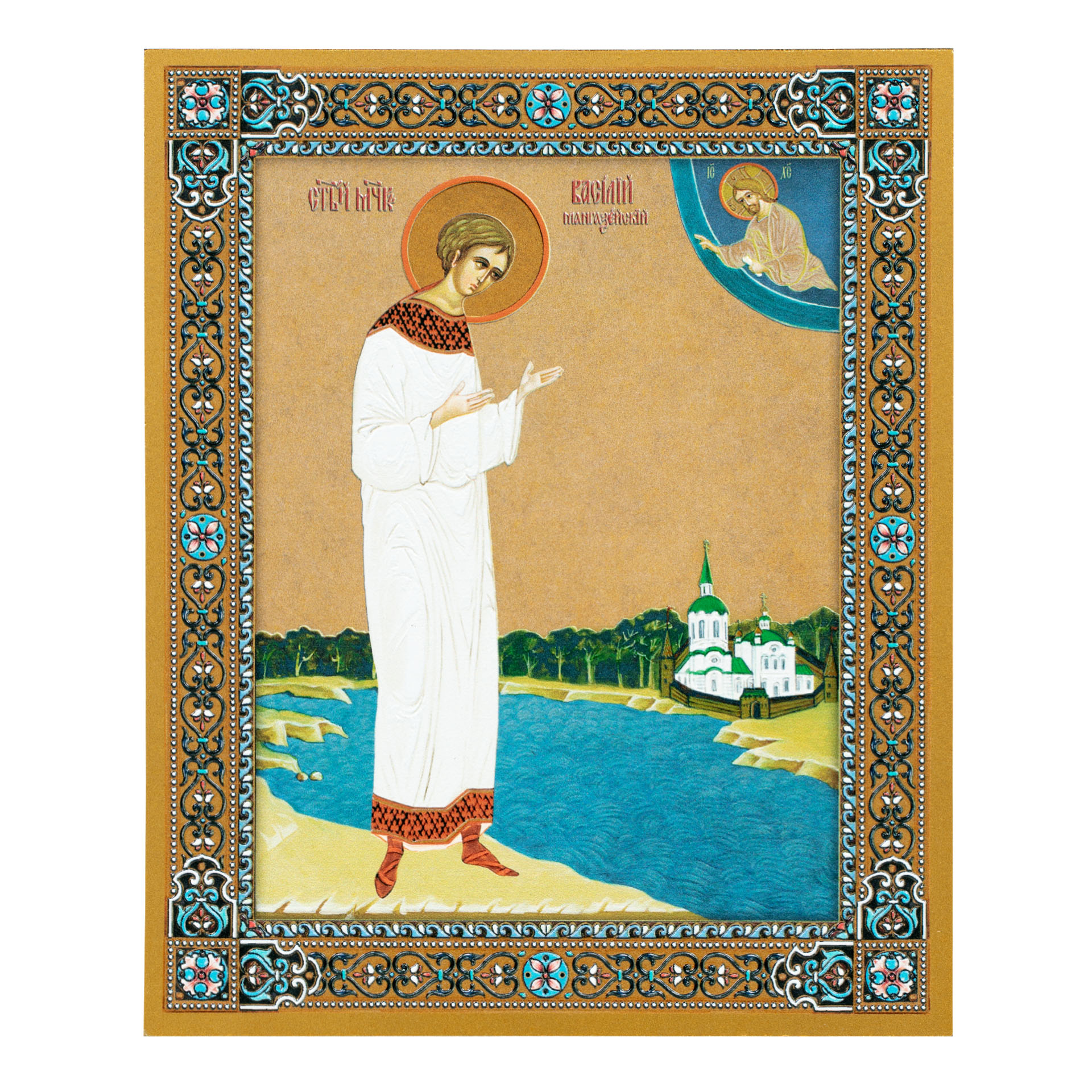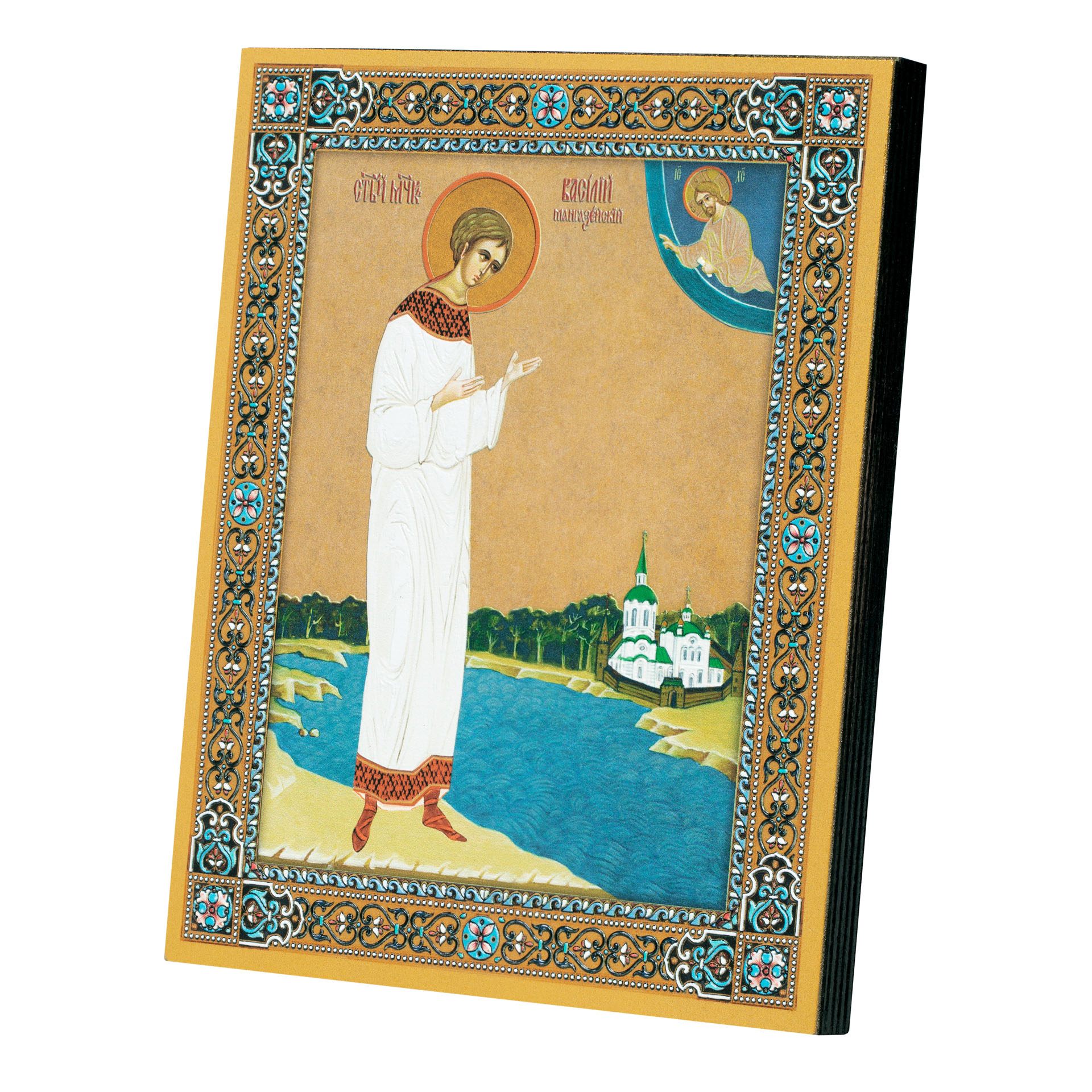 Икона на доске 13х15 золоченое покрытие, объёмная печать, лак Василий Мангазейский