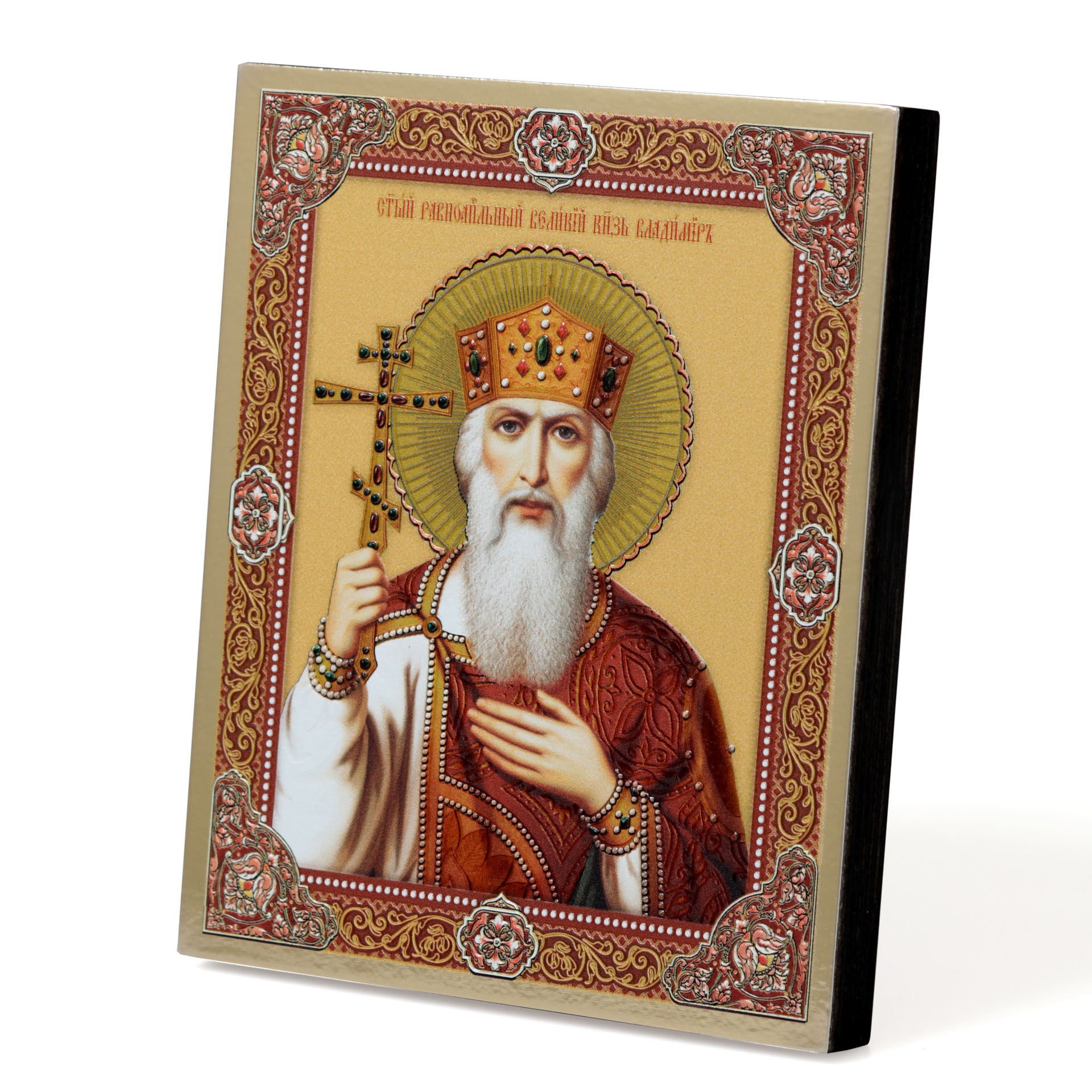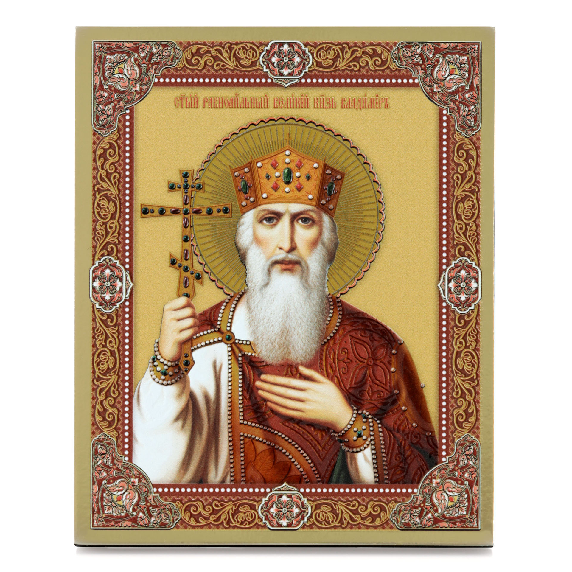 Икона на доске 13х15 золоченое покрытие, объёмная печать, лак Владимир равн. князь Киевск.,