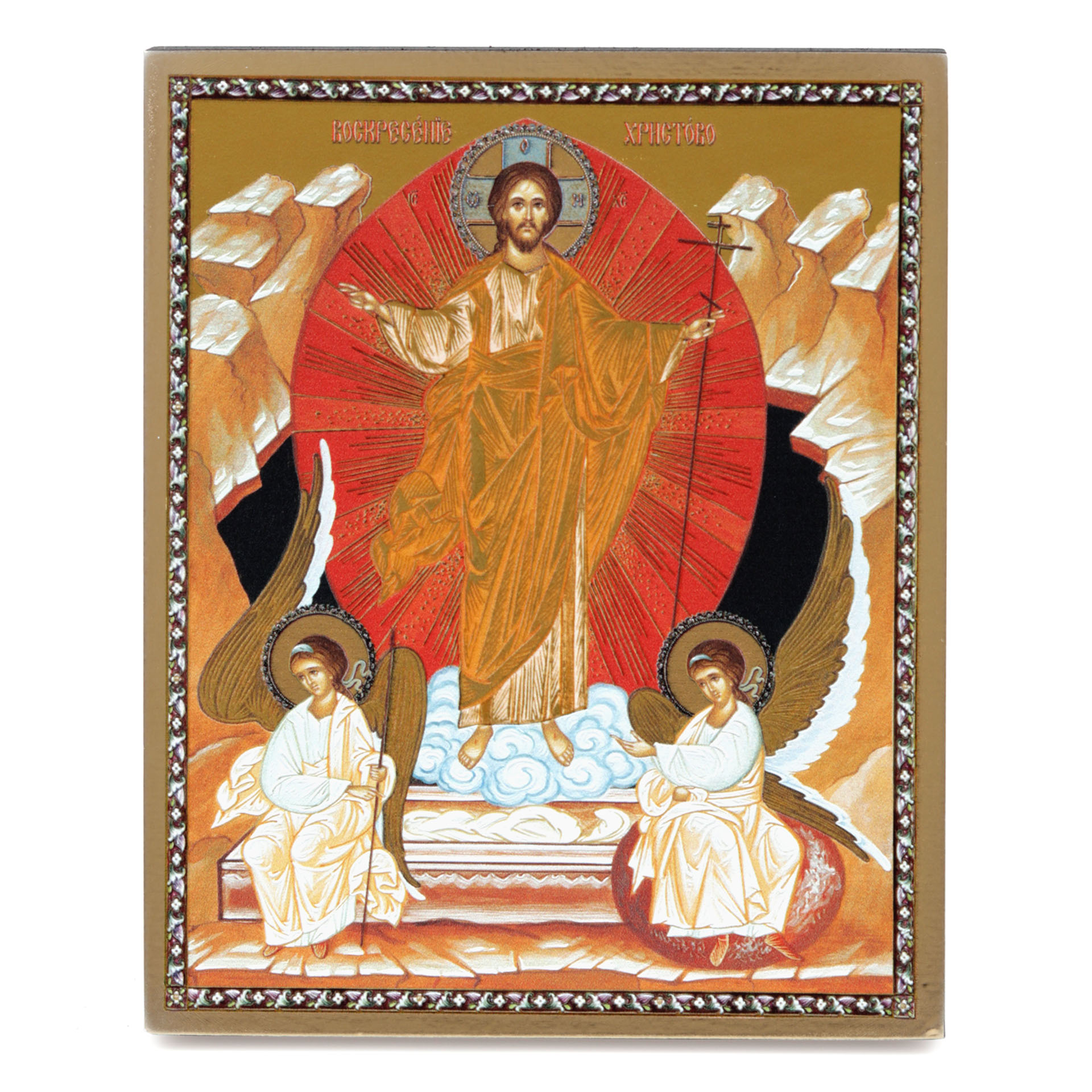 Икона на доске 13х15 золоченое покрытие, объёмная печать, лак Воскресение Христово 2