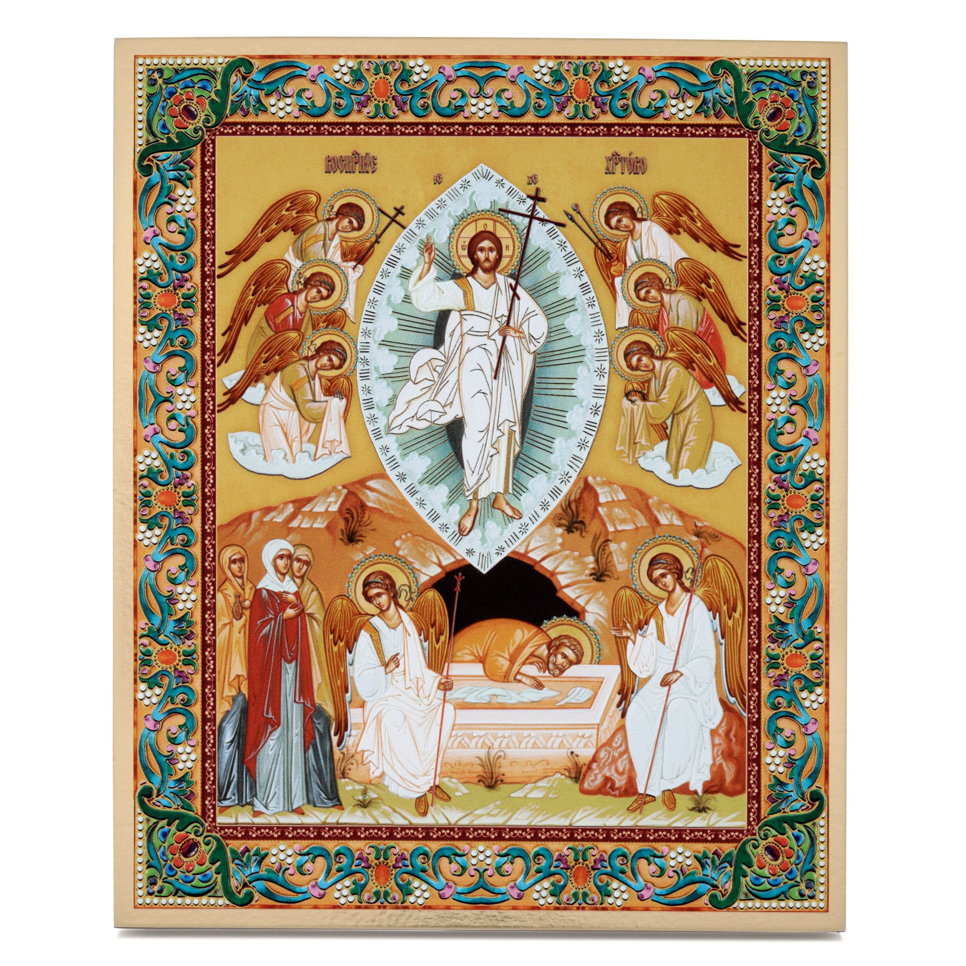 Икона на доске 13х15 золоченое покрытие, объёмная печать, лак Воскресение Христово 4