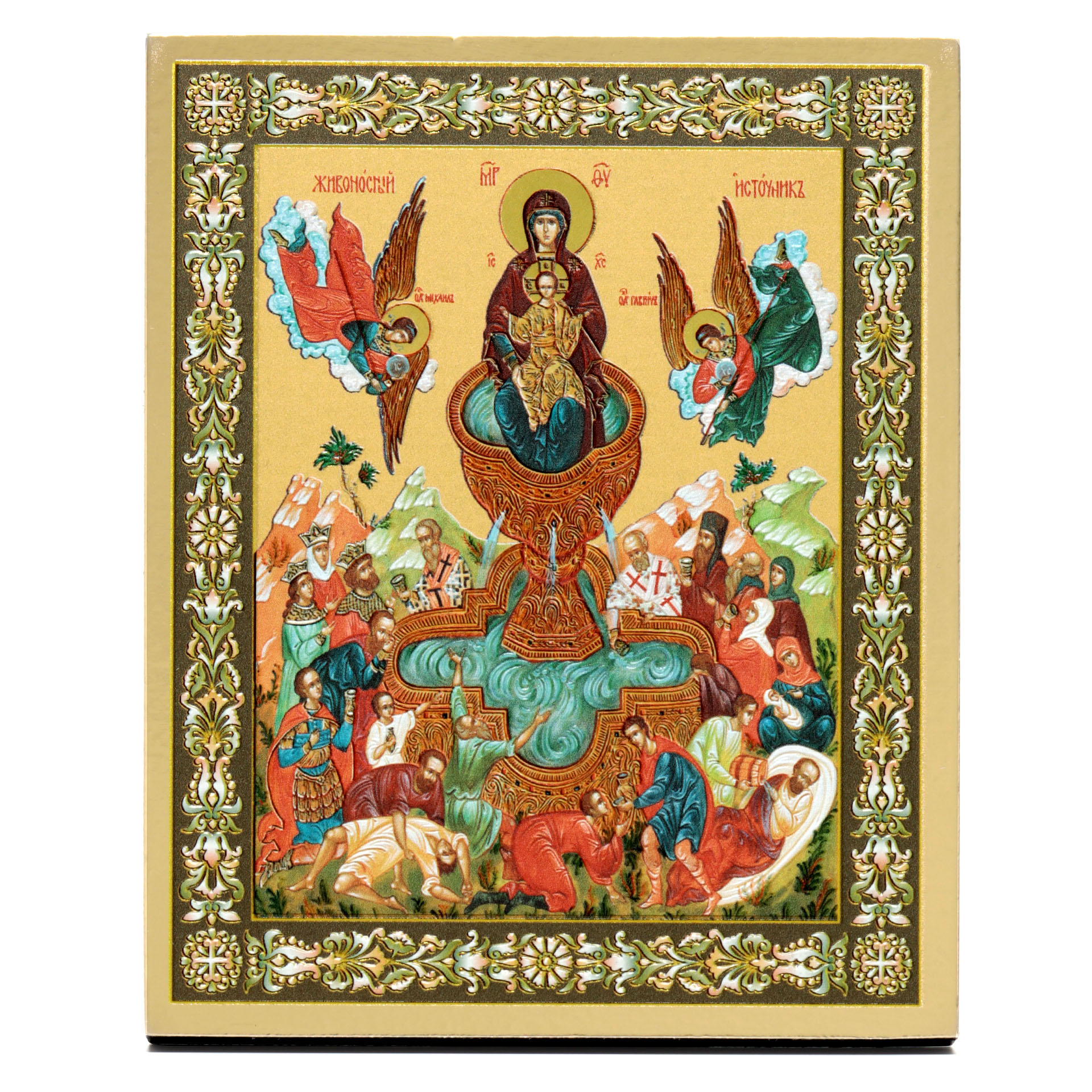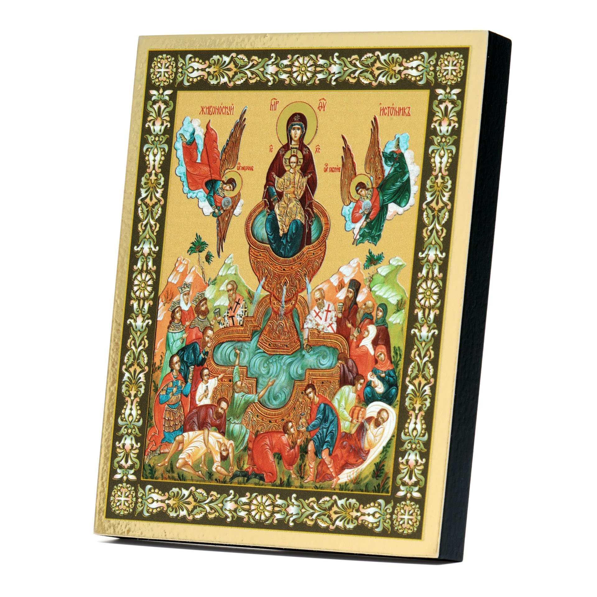Икона на доске 13х15 золоченое покрытие, объёмная печать, лак Живоносный Источник 1