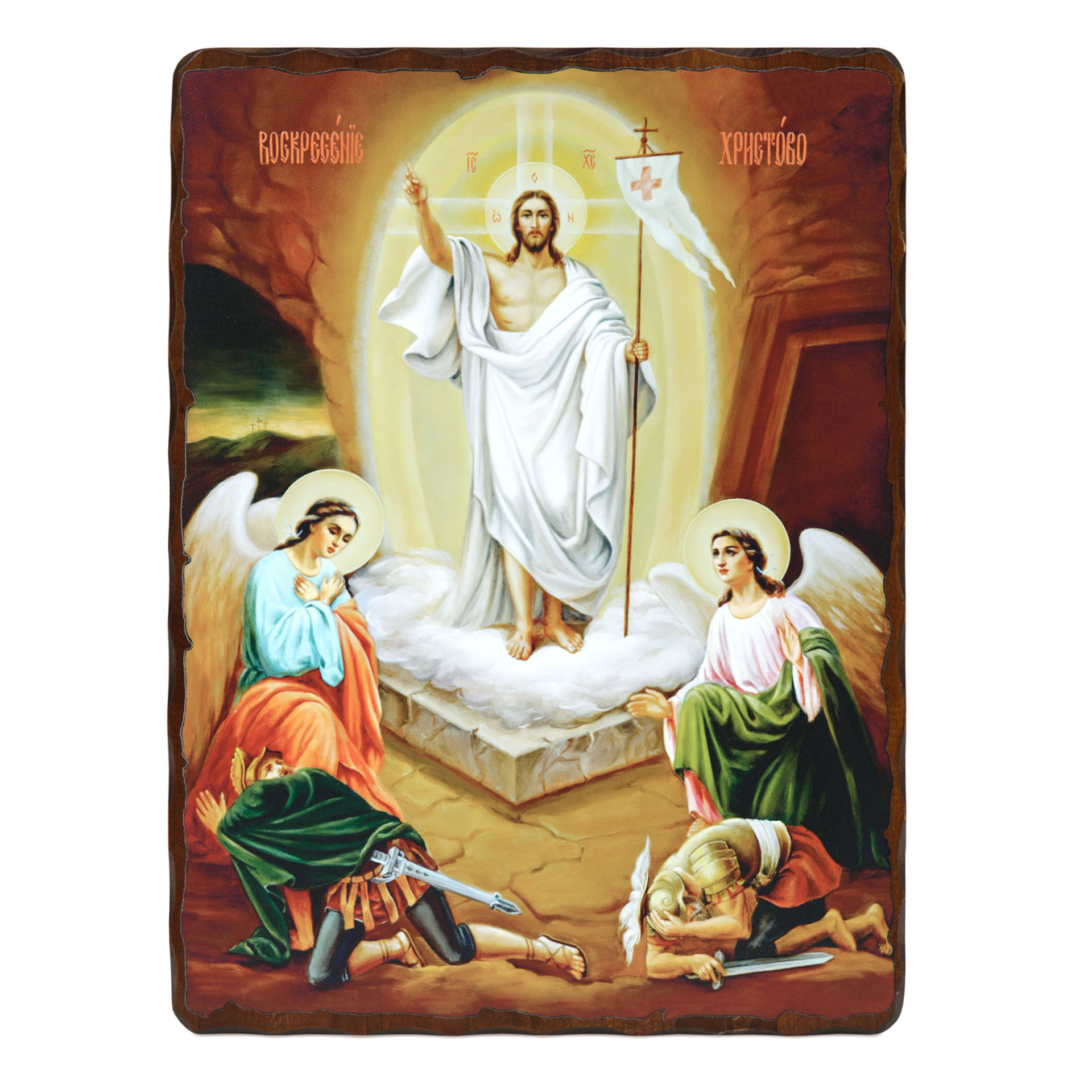 Икона на доске 17х22 объёмная печать, лак Воскресение Христово 1,