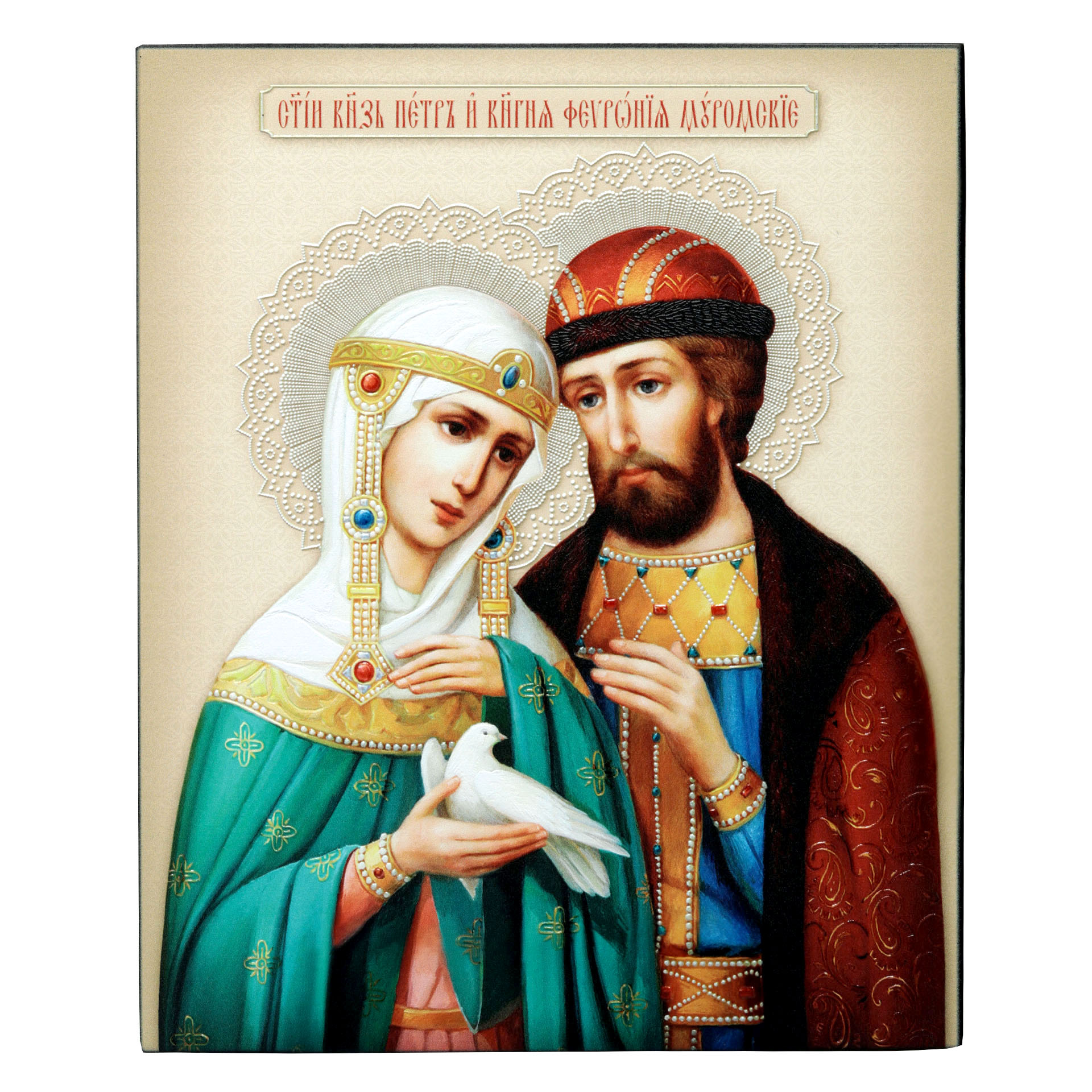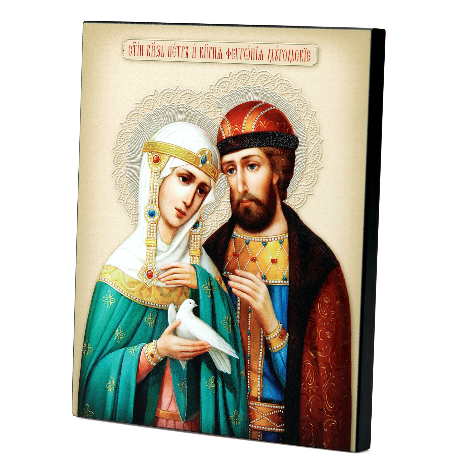 Икона на доске 18х24 объёмная печать, лак Петр и Феврония,