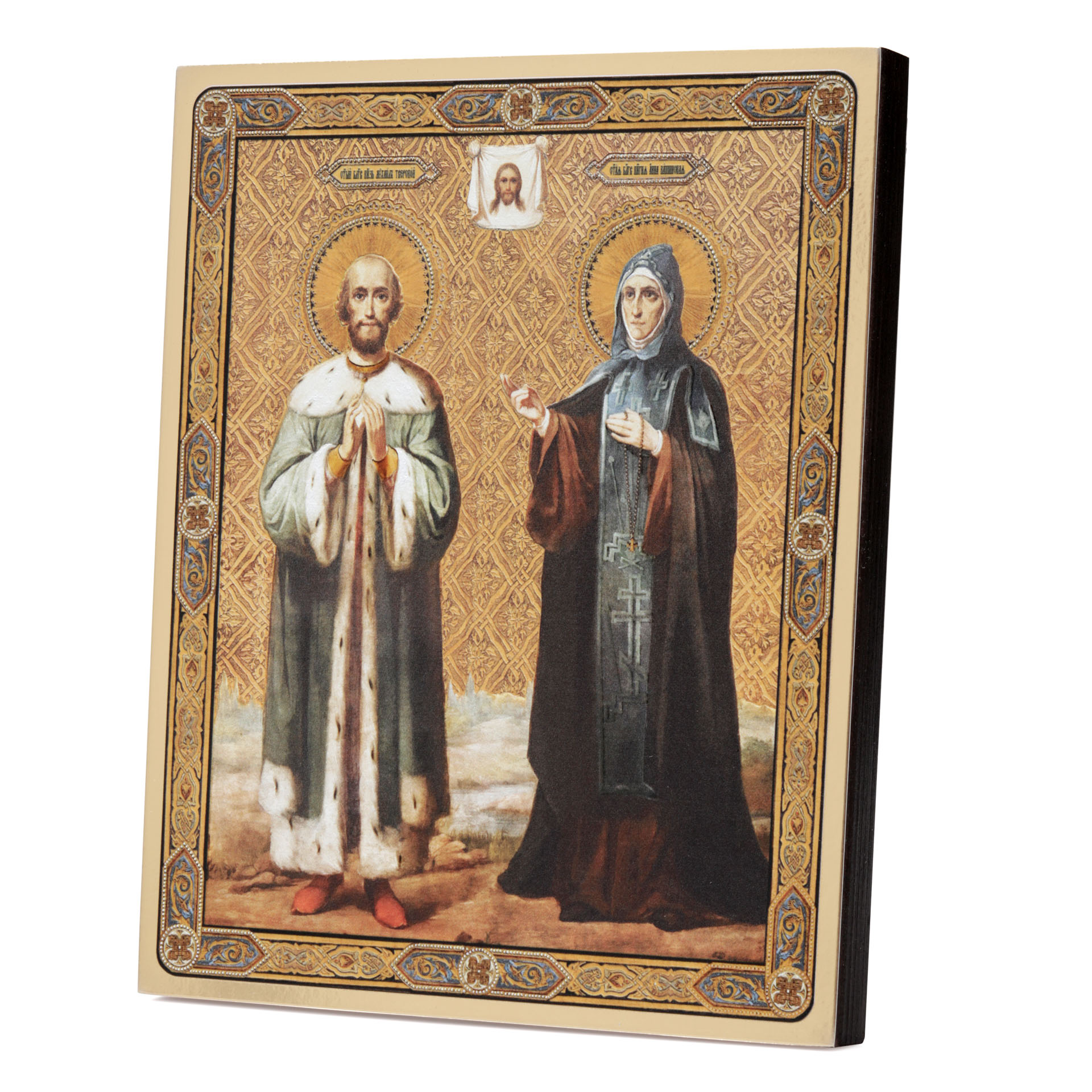 Икона на доске 18х24 золоченое покрытие, объёмная печать, лак Анна Кашинская+Михаил Тверской,