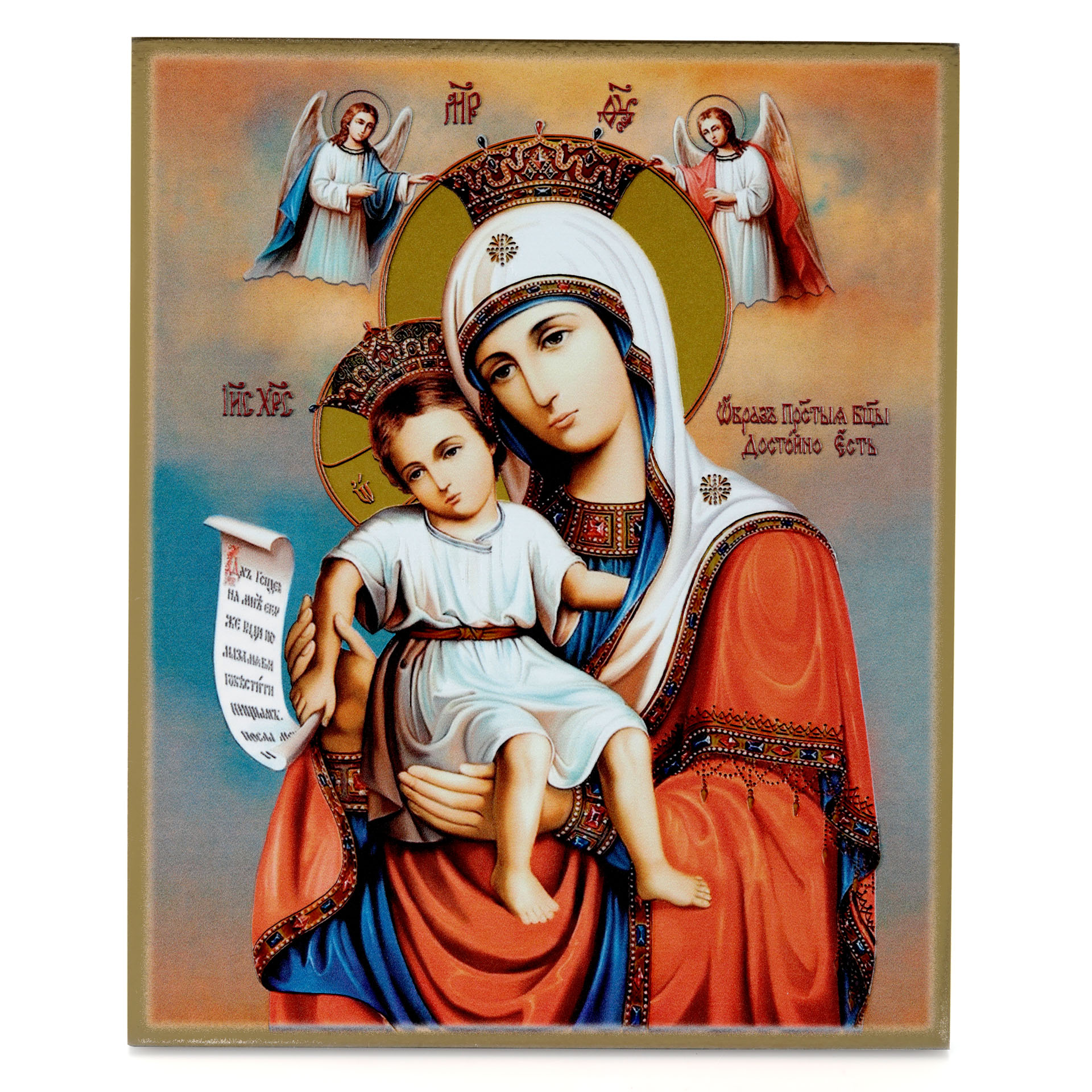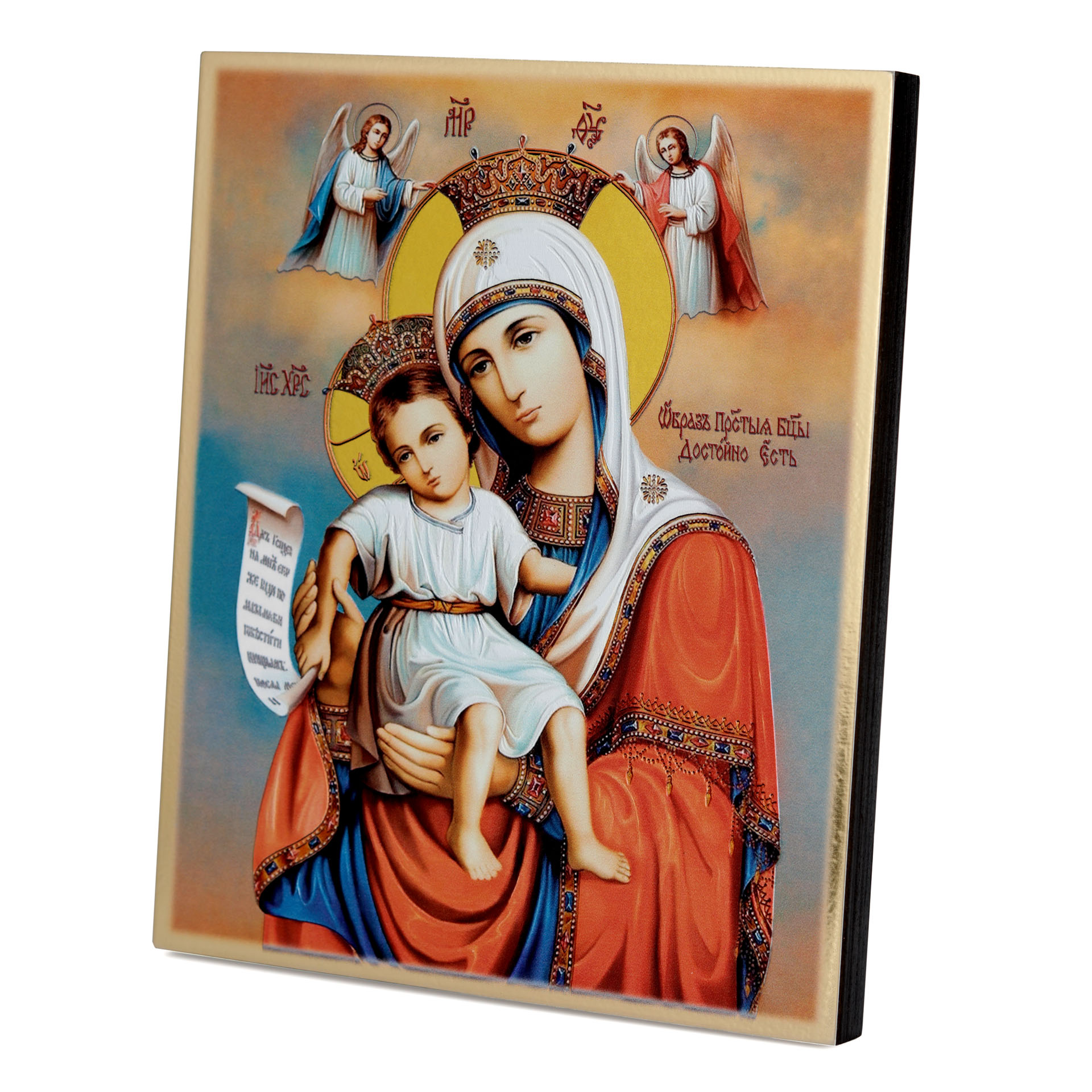 Икона на доске 18х24 золоченое покрытие, объёмная печать, лак Достойно Есть,