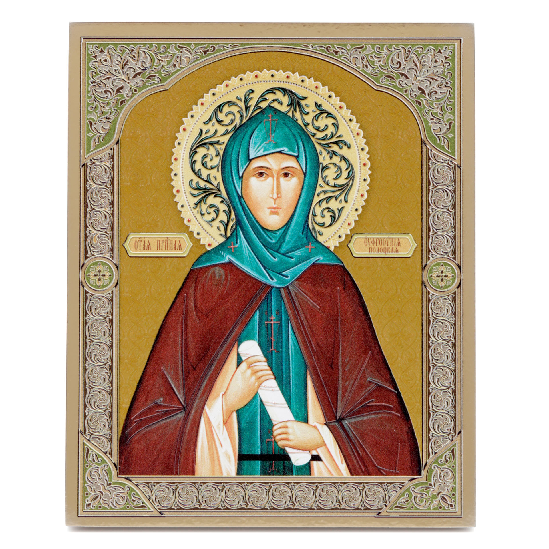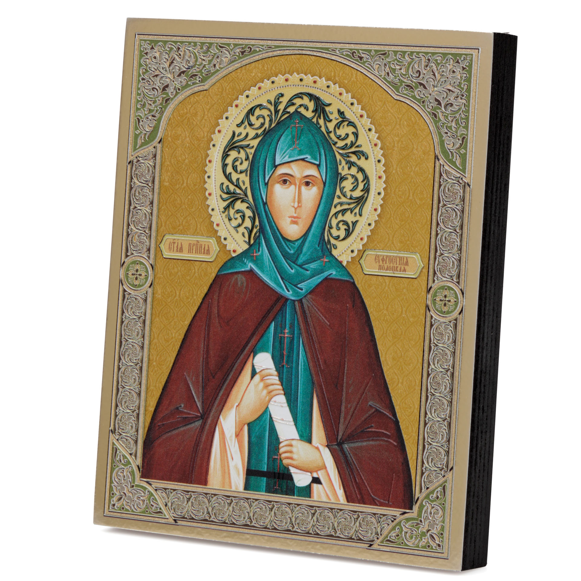 Икона на доске 18х24 золоченое покрытие, объёмная печать, лак Евфросиния Полоцкая