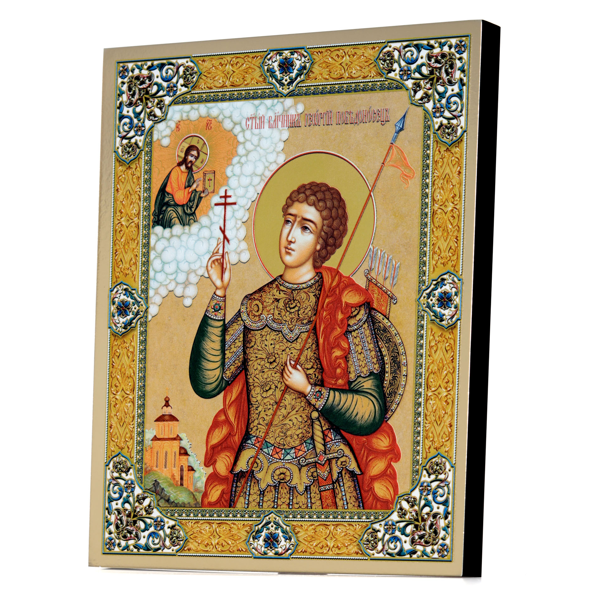 Икона на доске 18х24 золоченое покрытие, объёмная печать, лак Георгий Победоносец,