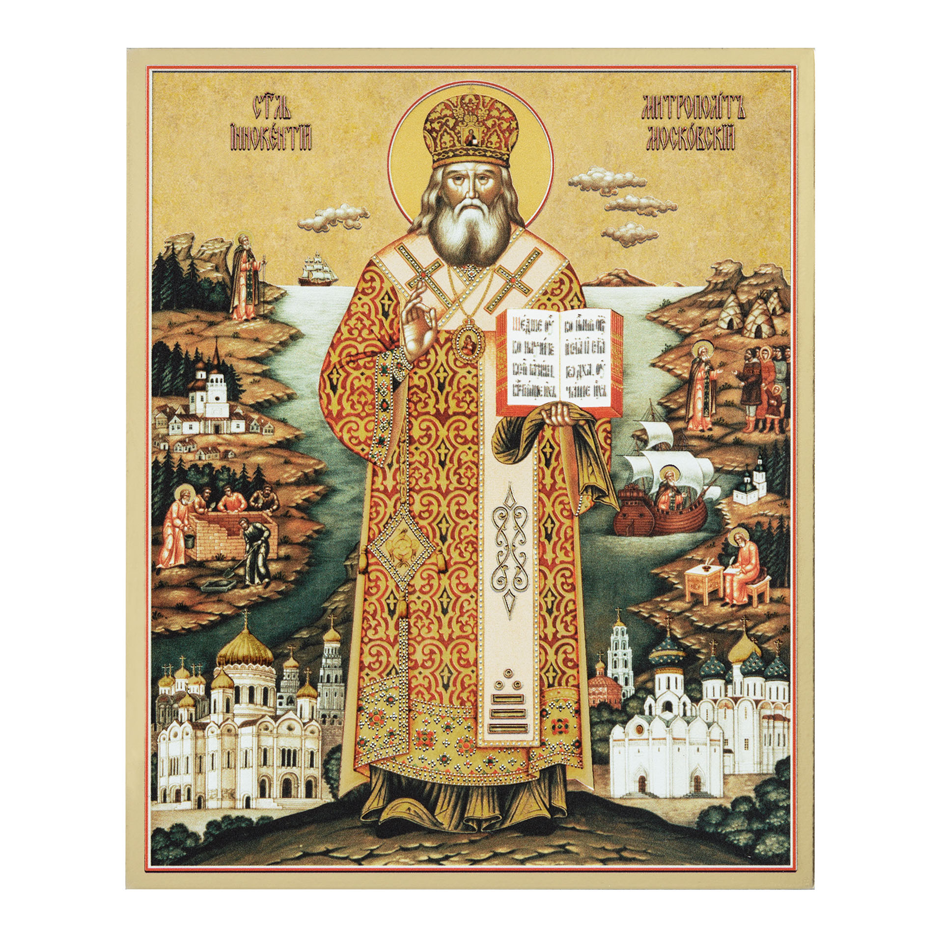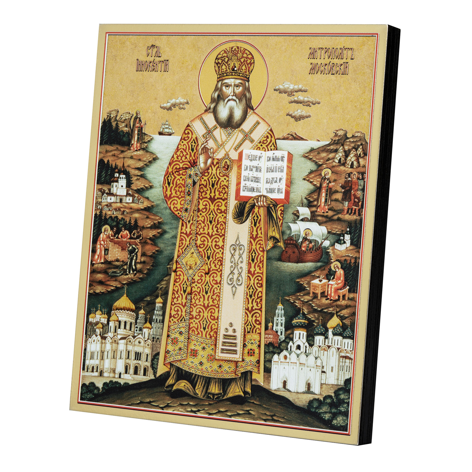 Икона на доске 18х24 золоченое покрытие, объёмная печать, лак Иннокентий Московский,