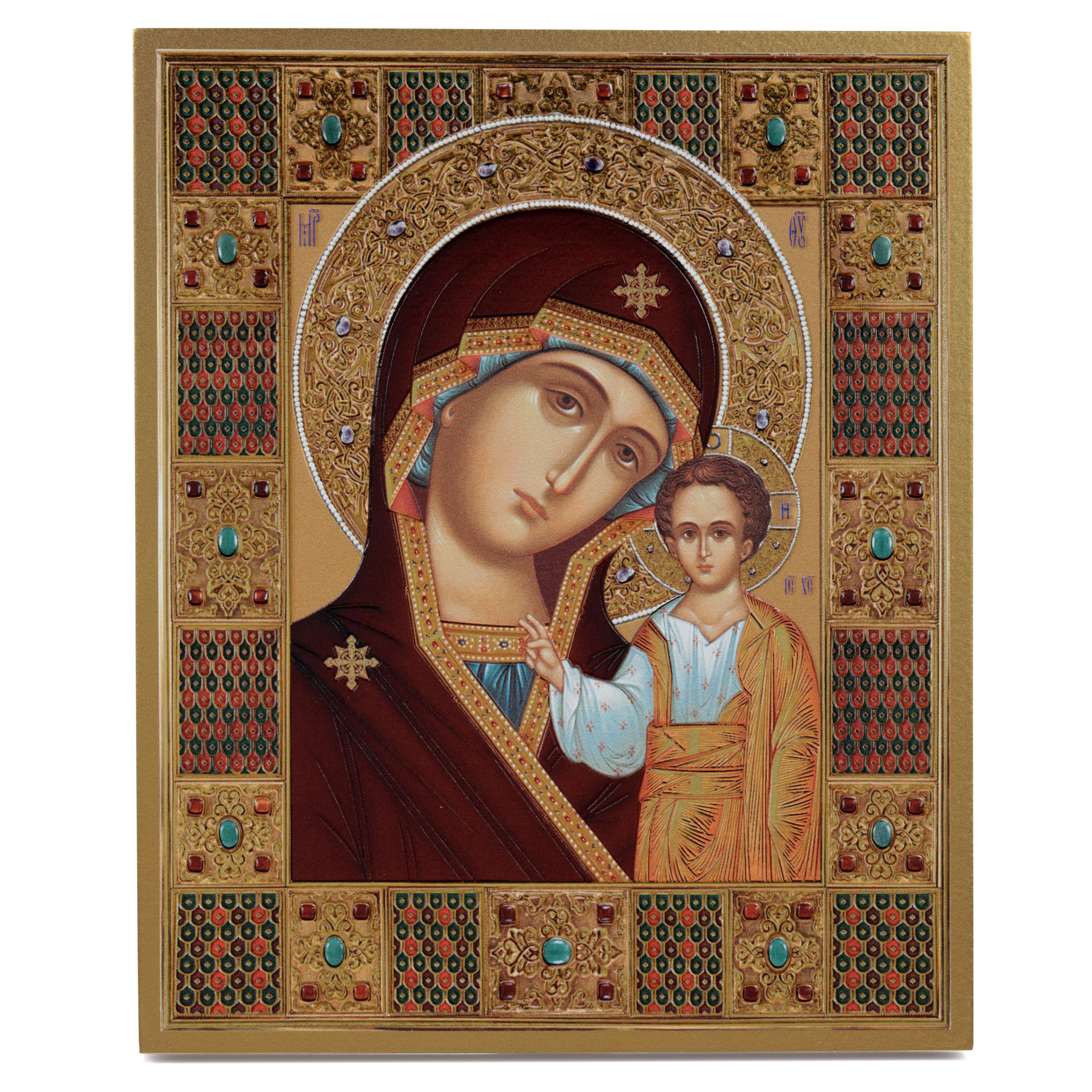 Икона на доске 18х24 золоченое покрытие, объёмная печать, лак Казанская БМ 7